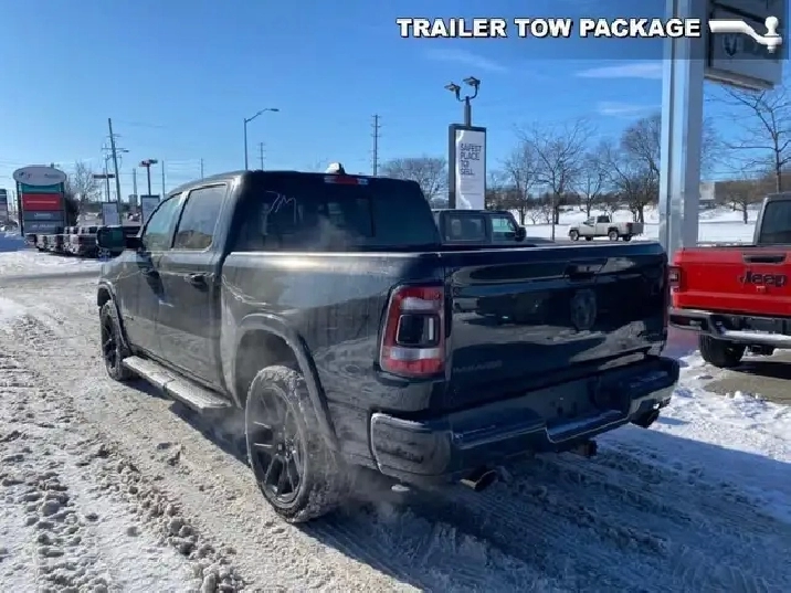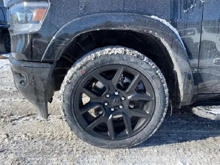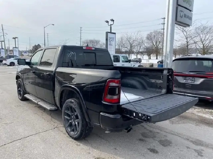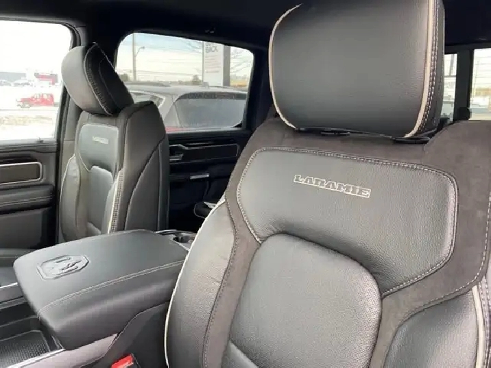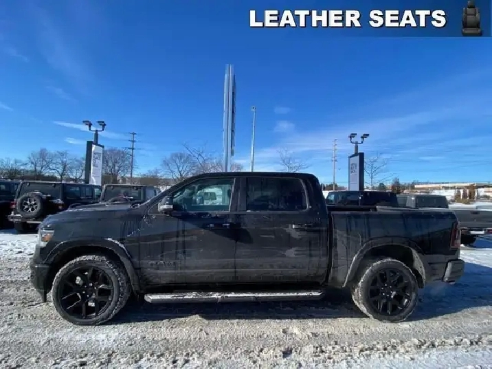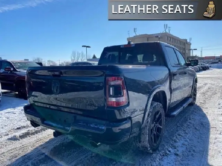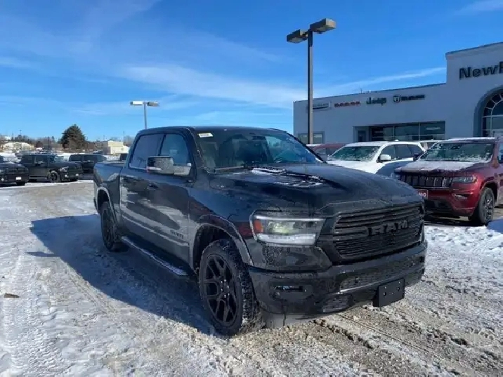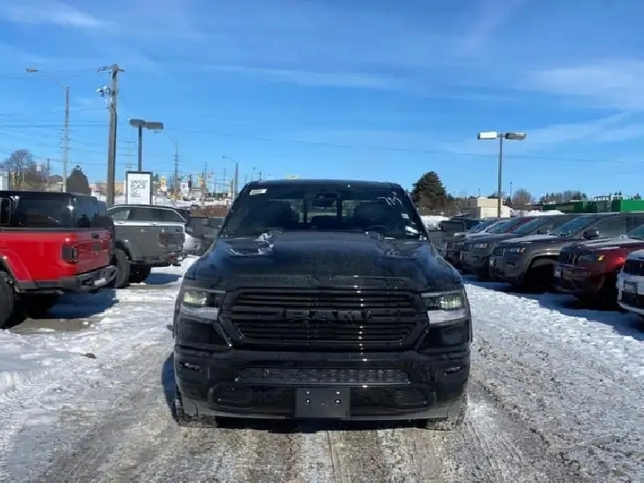 WAS: $82385 NOW: $80385 plus taxes and licensing feesIntroducing the new Ram 1500 Laramie, a sleek black 4x4 Crew Cab truck that's ready to tackle any terrain with ease. With its powerful 5.7L 8-cylinder engine producing an impressive 395 RPM @ 5600, this vehicle combines robust capability with luxurious comfort. The bold exterior of this Ram 1500 complements its commanding presence on the road, while the interior boasts an all-black color scheme emphasizing its refined craftsmanship. Equipped with outstanding features like alloy wheels and the convenience of a backup camera, the Laramie trim elevates your driving experience. Enjoy plush travels with leather seats, heated and cooled front seat options, and a leather-wrapped steering wheel that adds a touch of sophistication. Stay connected and secure with the integrated navigation system and enjoy peace of mind thanks to safety features such as heated mirrors and keyless entry. Whether you're commuting or conquering rugged terrain, the 4x4 drivetrain ensures safe and smooth handling. Experience the ease of automatic transmission with supportive amenities like power seats and windows, air conditioning, as well as cruise control for those long journeys. This truck is perfect for adventurers, families looking for a dependable vehicle, or professionals needing a reliable workhorse. Don't miss out on this incredible opportunity to own a luxurious and capable truck. Contact us today for more information about the new Ram 1500 Laramie 4x4 Crew Cab!