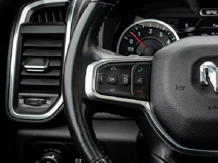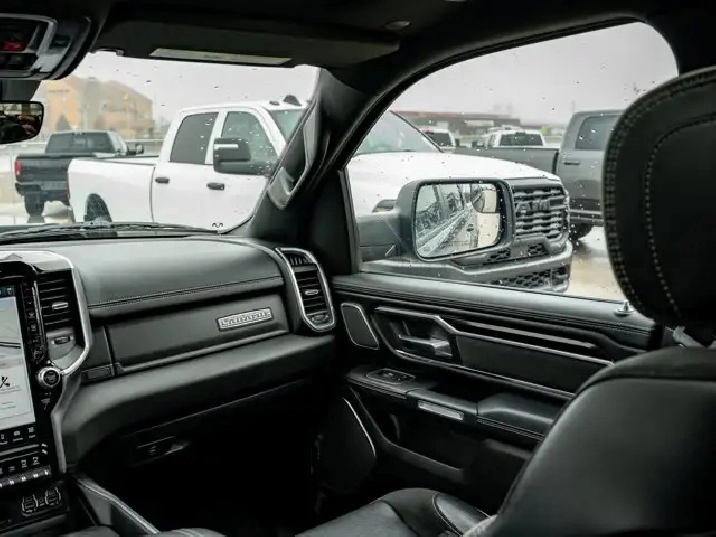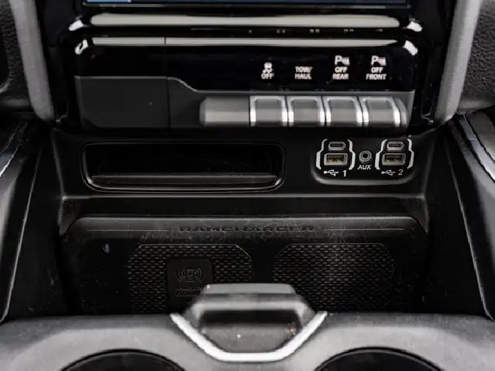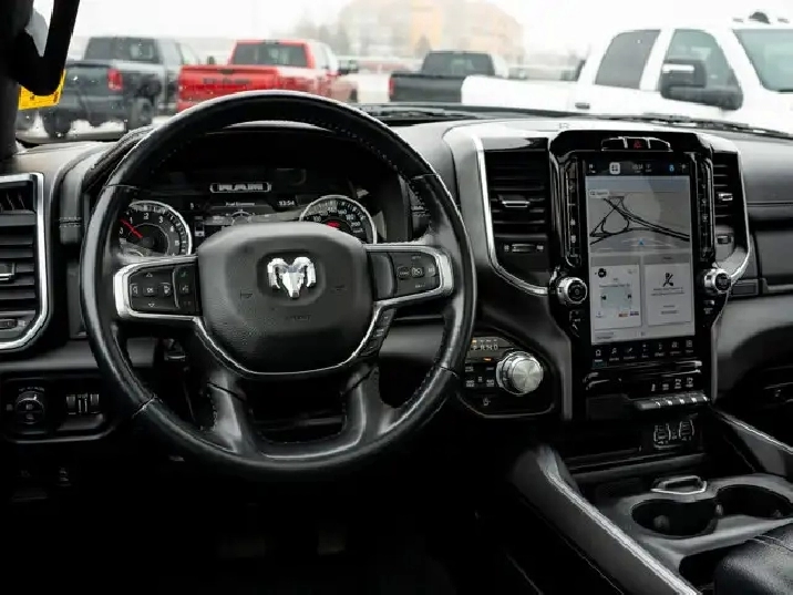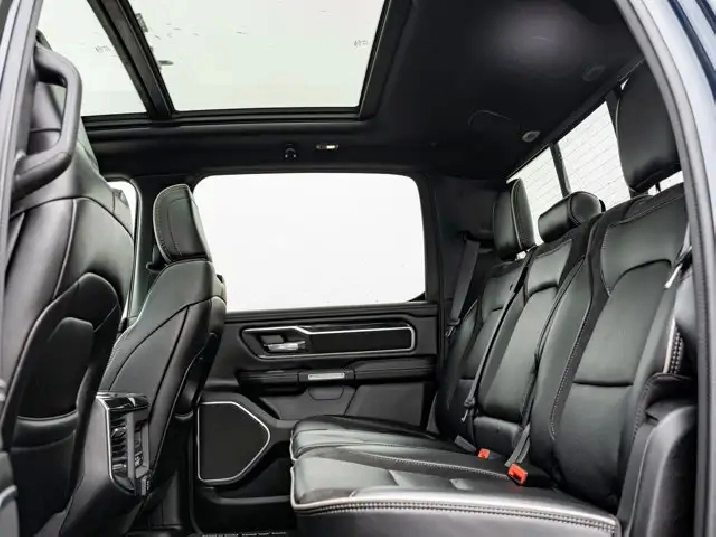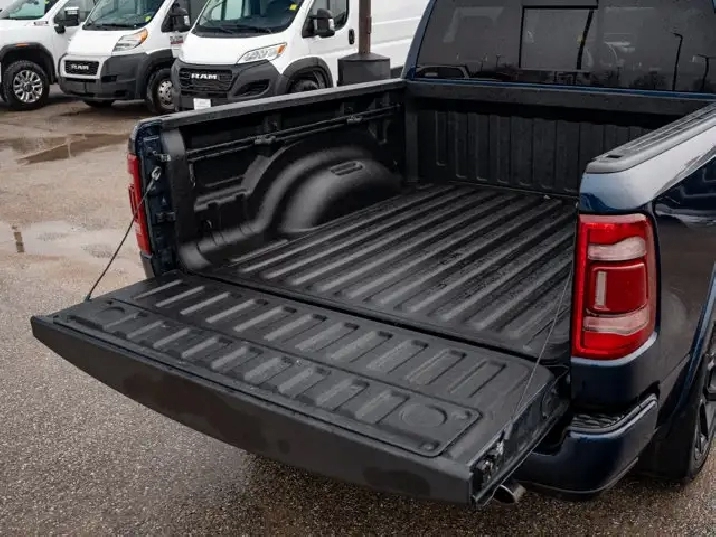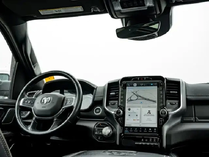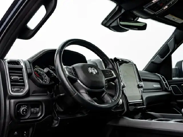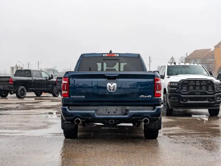 - LARAMIE LEVEL B EQUIPMENT GROUP -inc: Remote Tailgate Release 19-Speaker harman/kardon Prem Sound Rear Underseat Compartment Storage Automatic High-Beam Headlamp Control Rain-Sensing Windshield Wipers Park-Sense Front/Rear Park Assist w/Stop Second-Row Heated Seats Door Trim Panel Foam Bottle Insert Rear 60/40 Folding/Reclining Seat,3.92 REAR AXLE RATIO,DUAL-PANE PANORAMIC SUNROOF -inc: LED Dome/Reading Lamp Dome Dual LED Reading Lamps,ENGINE: 5.7L HEMI VVT V8 W/MDS & ETORQUE -inc: 48-Volt Belt Starter Generator Active Noise Control System Heavy-Duty Engine Cooling Passive Tuned Mass Damper GPEC 5 Engine Controller Dual Rear Exhaust w/Bright Tips HEMI Badge 18 Aluminum Spare Wheel,PATRIOT BLUE PEARL,SPORT APPEARANCE PACKAGE -inc: Tires: 275/55R20 OWL All-Season Body-Colour Exterior Mirrors Black Interior Accents Body-Colour Premium Power Mirrors Body-Colour Front Bumper Body-Colour Door Handles Body-Colour Rear Bumper w/Step Pads Wheels: 20 x 9 Aluminum Black Grille w/Body-Colour Surround,WHEELS: 22 X 9 FORGED ALUMINUM -inc: Tires: 285/45R22XL BSW All Season Pirelli Brand Tires,CLASS IV RECEIVER HITCH,BRIGHT WHEEL-TO-WHEEL SIDE STEPS,REAR WHEELHOUSE LINERS,124.9-LITRE (27.4-GALLON) FUEL TANK,TRANSMISSION: 8-SPEED AUTOMATIC (STD),QUICK ORDER PACKAGE 27H LARAMIE -inc: Engine: 5.7L HEMI VVT V8 w/MDS & eTorque Transmission: 8-Speed Automatic,GVWR: 3 220 KGS (7 100 LBS) (STD),BED UTILITY GROUP -inc: MOPAR Spray-In Bedliner 4 MOPAR Adjustable Cargo Tie-Down Hooks Pick-Up Box Lighting,BLACK LEATHER-FACED BUCKET SEATS -inc: Bucket Seats Rear 60/40 Folding/Reclining Seat Delete LED Lamp - Floor Console Bin Full-Length Upgraded Floor Console,ANTI-SPIN DIFFERENTIAL REAR AXLE,TIRES: 285/45R22XL BSW ALL SEASON,Aluminum Wheels,4-Wheel Disc Brakes,Power Steering,Four Wheel Drive,ABS,Conventional Spare Tire,Brake Assist,Tow Hitch,Fog Lamps,Power Door Locks,Navigation System,LED Headlights,Rear Defrost,MP3 Capability,Premium Sound System,Steering Wheel Audio Controls,Integrated Turn Signal Mirrors,Heated Mirrors,Power Mirror(s),Variable Speed Intermittent Wipers,Daytime Running Lights,Requires Subscription,Automatic Headlights,Bluetooth Connection,Intermittent Wipers,Privacy Glass,HD Radio,Satellite Radio,Auxiliary Audio Input,Smart Device Integration,Premium Sound System,Power Folding Mirrors,AM/FM Stereo,Heated Steering Wheel,Pass-Through Rear Seat,Power Passenger Seat,Rear Bench Seat,Power Driver Seat,Keyless Entry,Passenger Vanity Mirror,Power Windows,Driver Illuminated Vanity Mirror,A/C,Adjustable Steering Wheel,Multi-Zone A/C,Universal Garage Door Opener,Auto-Dimming Rearview Mirror,Keyless Start,Driver Adjustable Lumbar,Bluetooth Connection,Driver Vanity Mirror,Split Bench Seat,Woodgrain Interior Trim,Climate Control,Keyless Entry,Passenger Adjustable Lumbar,Leather Seats,Passenger Illuminated Visor Mirror,Cruise Control,Trip Computer,Power Door Locks,Power Door Locks,Seat Memory,Leather Steering Wheel,Power Driver Seat,Mirror Memory,Power Door Locks,WiFi Hotspot,Rear Head Air Bag,Mirror Memory,Front Head Air Bag,Passenger Air Bag,Traction Control,Remote Engine Start,Tire Pressure Monitor,Smart Device Integration,Floor Mats,Child Safety Locks,Passenger Air Bag Sensor,Front Collision Mitigation,Heated Front Seat(s),Front Side Air Bag,Heated Front Seat(s),Keyless Start,Driver Air Bag,Cooled Front Seat(s),Immobilizer,Traction Control,Adjustable Pedals,Back-Up Camera,Security System,Power Windows,Navigation System,Trip Computer,Smart Device Integration,Stability Control