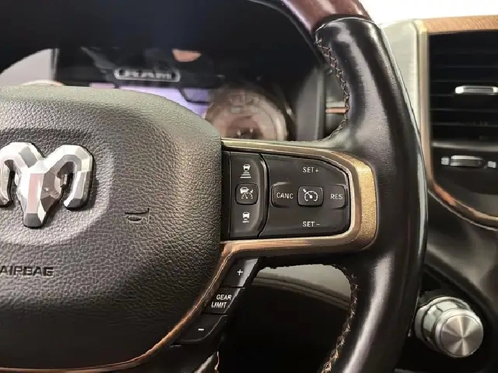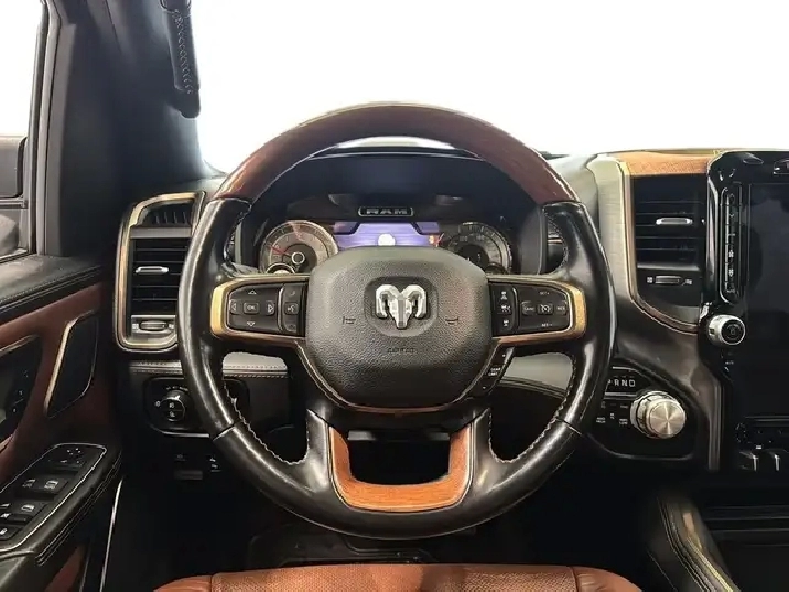 RAM 1500 LARAMIE LONGHORN 4X4 2022 5,7 L HEMI Avec couvre-caisse et marchepieds retractables Disponible des maintenant chez Desmeules Chrysler a Laval Decouvrez un camion pleine grandeur qui combine puissance emblematique, luxe raffine et equipements pratiques. Le Ram 1500 Longhorn 4x4 2022, propulse par le legendaire moteur 5,7 L HEMI V8, offre des performances impressionnantes, une sonorite distinctive et un confort exceptionnel, autant pour le travail que pour les deplacements quotidiens. CARACTERISTIQUES PRINCIPALES Moteur 5,7 L HEMI V8 reconnu pour sa puissance, sa fiabilite et son couple genereux; Transmission automatique performante; Traction integrale 4x4 assurant une maitrise optimale en toutes saisons; Excellente capacite de remorquage; Conduite souple, stable et etonnamment silencieuse pour un camion V8. FINITION LONGHORN LUXE DISTINCTIF Interieur cuir premium avec surpiqures et details Longhorn exclusifs; Sieges avant chauffants et ventiles; Volant chauffant gaine de cuir; Garnitures en bois veritable et metal; Ambiance haut de gamme unique dans la categorie. EQUIPEMENTS PRATIQUES INCLUS Couvre-caisse pour une protection et une polyvalence accrues; Marchepieds retractables electriques facilitant l'acces a bord; Hayon assiste; Boite de chargement robuste et fonctionnelle; Multiples espaces de rangement intelligents. TECHNOLOGIES & CONNECTIVITE Grand ecran tactile central avec systeme multimedia avance; Apple CarPlay et Android Auto; Systeme audio premium; Camera de recul avec aides visuelles; Commandes audio et telephone au volant. SECURITE & AIDES A LA CONDUITE Regulateur de vitesse adaptatif; Surveillance des angles morts; Alerte de collision avant avec freinage d'urgence; Aide au stationnement avant et arriere; Controle de stabilite et de traction. LE CAMION DE LUXE A L'ETAT PUR Le Ram 1500 Longhorn 4x4 2022 5,7 L HEMI est le choix ideal pour ceux qui recherchent un camion puissant, raffine et polyvalent, sans compromis sur le confort ni sur les performances. Un vehicule qui se distingue autant par son style que par sa capacite. Disponible des maintenant chez Desmeules Chrysler a Laval. ACHETER EN TOUTE CONFIANCE CHEZ DESMEULES CHRYSLER Inspection certifiee complete; Options de financement simples et rapides; Garantie prolongee disponible; Echange accepte; Jusqu'a 90 jours sans paiements (selon approbation).
