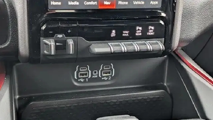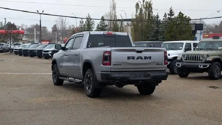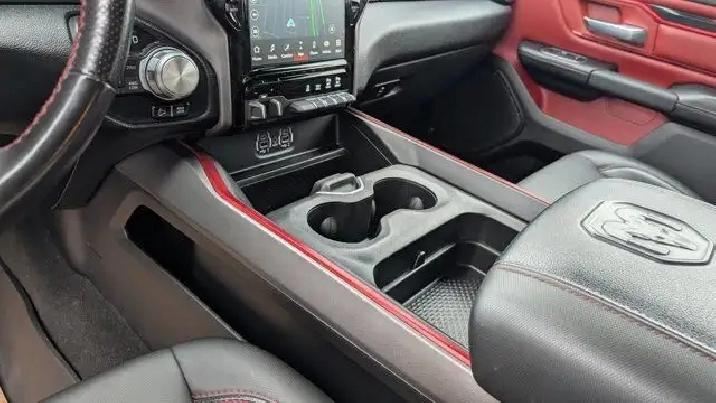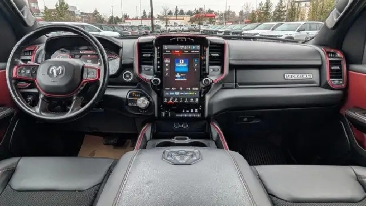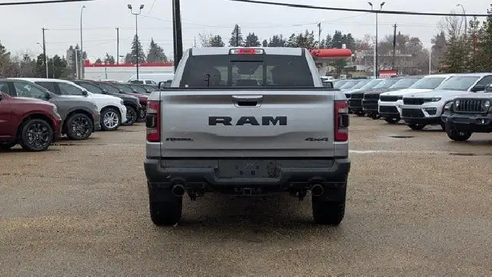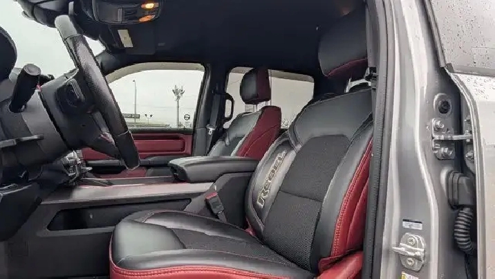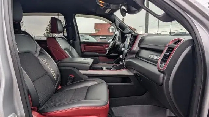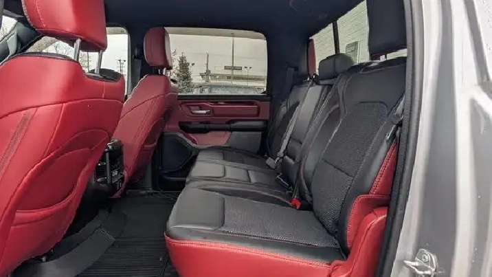 - COLD WEATHER GROUP -inc: MOPAR Winter Front Grille Cover,9 ALPINE SPEAKERS W/SUBWOOFER,REBEL LEVEL 2 EQUIPMENT GROUP -inc: Rear Window Defroster Rain-Sensing Windshield Wipers Park-Sense Front/Rear Park Assist w/Stop Power Adjustable Pedals Rear Dome Lamp w/On/Off Switch Body-Colour Door Handles A/C w/Dual-Zone Automatic Temperature Control 115V Rear Auxiliary Power Outlet Media Hub w/2 USB Charging Ports Rear Underseat Compartment Storage Remote Proximity Keyless Entry Universal Garage Door Opener Front Heated Seats Heated Steering Wheel Door Trim Panel Foam Bottle Insert Security Alarm Sun Visors w/Illuminated Vanity Mirrors,MONOTONE PAINT,REAR WHEELHOUSE LINERS,124.9-LITRE (27.4-GALLON) FUEL TANK,QUICK ORDER PACKAGE 28W REBEL -inc: Engine: 3.0L V6 Turbocharged Diesel Transmission: 8-Speed Automatic (DFV),RADIO: UCONNECT 5W NAV W/12.0 DISPLAY -inc: Google Android Auto Off-Road Info Pages 1-Year SiriusXM Subscription For More Info Call 888-539-7474 USB Mobile Projection Disassociated Touchscreen Display HD Radio Integrated Centre Stack Radio Connectivity - US/Canada 12 Touchscreen GPS Navigation 4G LTE Wi-Fi Hot Spot SiriusXM w/360L On-Demand Content Connected Travel & Traffic Services Apple CarPlay Capable,GVWR: 3 265 KGS (7 200 LBS),RED/BLACK CLOTH/VINYL BUCKET SEATS,TRANSMISSION: 8-SPEED AUTOMATIC (DFV),ENGINE: 3.0L V6 TURBOCHARGED DIESEL -inc: Secondary Active Grille Shutters 800-Amp Maintenance-Free Battery EcoDiesel Badge Heavy-Duty Engine Cooling 250 Amp Alternator GVWR: 3 265 kgs (7 200 lbs),TRAILER BRAKE CONTROL,WHEELS: 18 X 8 PAINTED MID-GLOSS BLACK (STD),BILLET SILVER METALLIC,Conventional Spare Tire,Locking/Limited Slip Differential,Brake Assist,Aluminum Wheels,ABS,Power Steering,Four Wheel Drive,4-Wheel Disc Brakes,Tires - Front All-Terrain,Tow Hitch,Tires - Rear All-Terrain,Auxiliary Audio Input,Power Mirror(s),Integrated Turn Signal Mirrors,Variable Speed Intermittent Wipers,Intermittent Wipers,Heated Mirrors,MP3 Capability,LED Headlights,Bluetooth Connection,Fog Lamps,Steering Wheel Audio Controls,Tow Hooks,Daytime Running Lights,Automatic Headlights,Power Door Locks,AM/FM Stereo,Privacy Glass,Power Folding Mirrors,Passenger Air Bag Sensor,Child Safety Locks,Driver Air Bag,Keyless Start,Keyless Entry,Leather Steering Wheel,Passenger Air Bag,Tire Pressure Monitor,Trip Computer,Traction Control,Auto-Dimming Rearview Mirror,Cruise Control,A/C,Floor Mats,Traction Control,Pass-Through Rear Seat,Adjustable Steering Wheel,Power Driver Seat,Power Windows,Cloth Seats,Stability Control,Power Windows,Power Driver Seat,Power Door Locks,Front Collision Mitigation,Passenger Illuminated Visor Mirror,Driver Adjustable Lumbar,Telematics,Rear Bench Seat,Bluetooth Connection,Passenger Vanity Mirror,Power Door Locks,Front Head Air Bag,Back-Up Camera,Trip Computer,Front Side Air Bag,Requires Subscription,Bucket Seats,Immobilizer,Rear Head Air Bag,Vinyl Seats
