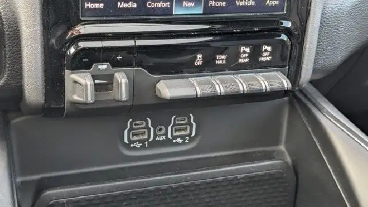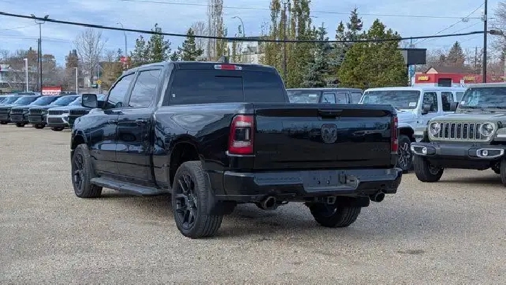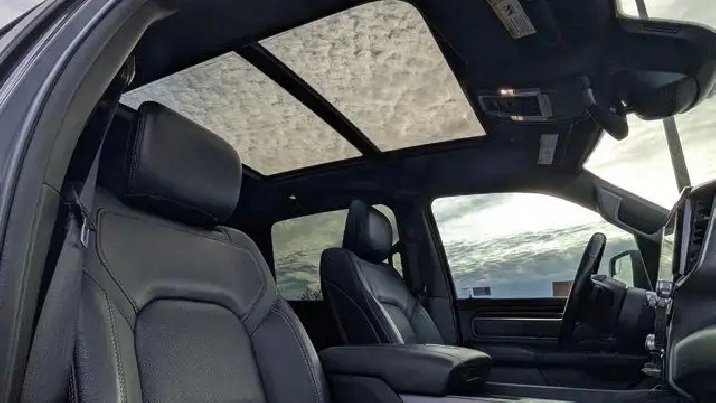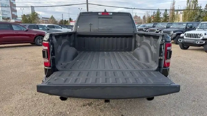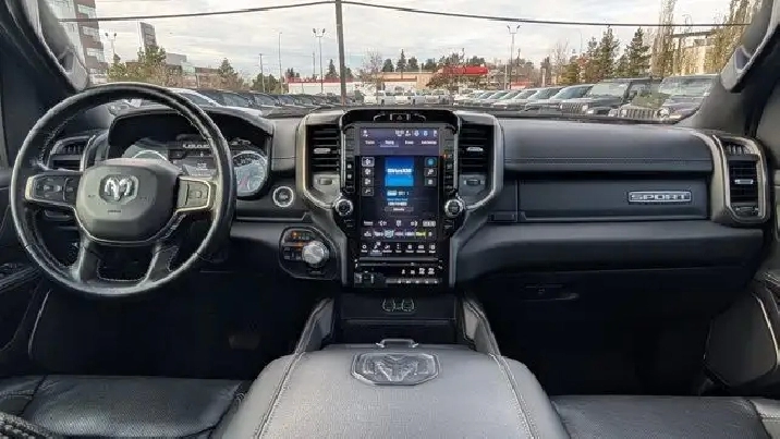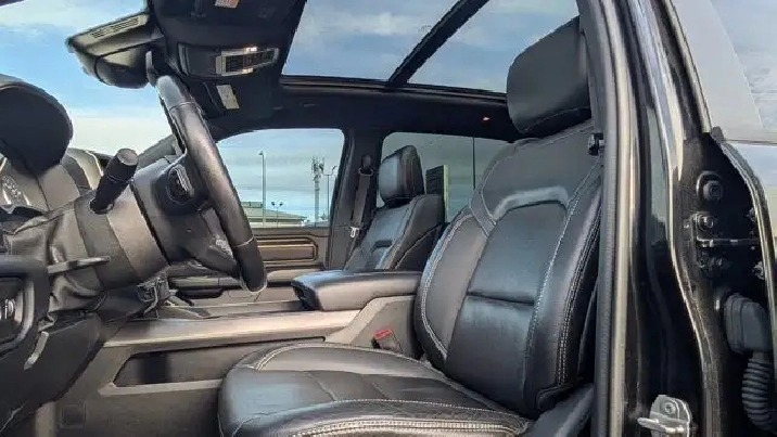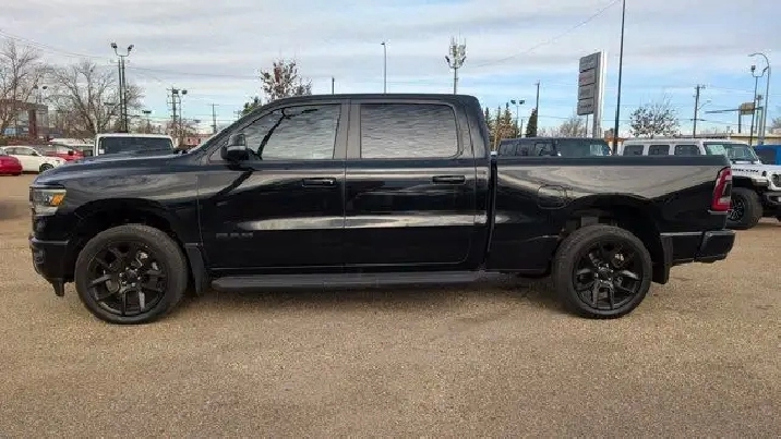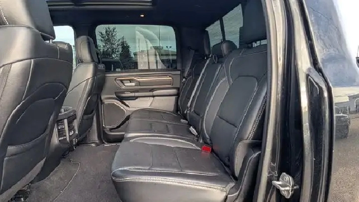 - DUAL-PANE PANORAMIC SUNROOF -inc: Dome Dual LED Reading Lamps,3.92 REAR AXLE RATIO,DIAMOND BLACK CRYSTAL PEARLCOAT,E-LOCKER REAR AXLE,REBEL 12 -inc: Radio: Uconnect 5W Nav w/12.0 Display Disassociated Touchscreen Display HD Radio Hands-Free Phone Communication 12 Touchscreen A/C w/Dual-Zone Automatic Temperature Control GPS Navigation SiriusXM w/360L On-Demand Content All Radio-Equipped Vehicles Connected Travel & Traffic Services All R1 High Radios 19-Speaker harman/kardon Prem Sound Global Telematics Box Module (TBM),WHEELS: 22 X 9 FORGED ALUMINUM -inc: Tires: 285/45R22XL BSW All Season Pirelli Brand Tires,CLASS IV RECEIVER HITCH,REBEL LEVEL 2 EQUIPMENT GROUP -inc: Media Hub w/2 USB Charging Ports Rear Underseat Compartment Storage Remote Proximity Keyless Entry Remote Start System Rain-Sensing Windshield Wipers Park-Sense Front/Rear Park Assist w/Stop Security Alarm 115V Rear Auxiliary Power Outlet,REAR WHEELHOUSE LINERS,SPORT PERFORMANCE HOOD,BLACK MOPAR TUBULAR SIDE STEPS,124.9-LITRE (27.4-GALLON) FUEL TANK,BLACK LEATHER-FACED FRONT VENTED BUCKET SEATS -inc: Power 2-Way Passenger Lumbar Adjust Power 8-Way Driver & Passenger Seats Front Ventilated Seats,TRANSMISSION: 8-SPEED AUTOMATIC (STD),RADIO: UCONNECT 5W NAV W/12.0 DISPLAY -inc: Disassociated Touchscreen Display HD Radio Hands-Free Phone Communication 12 Touchscreen A/C w/Dual-Zone Automatic Temperature Control GPS Navigation SiriusXM w/360L On-Demand Content All Radio-Equipped Vehicles Connected Travel & Traffic Services All R1 High Radios,ENGINE: 5.7L HEMI VVT V8 W/FUELSAVER MDS -inc: Active Noise Control System Heavy-Duty Engine Cooling Passive Tuned Mass Damper HEMI Badge 220 Amp Alternator (STD),TRAILER BRAKE CONTROL,NIGHT EDITION -inc: Wheels: 22 x 9 Forged Aluminum Tires: 285/45R22XL BSW All Season Pirelli Brand Tires Gloss Black Grille w/Black Surround,MOPAR SPRAY-IN BEDLINER,QUICK ORDER PACKAGE 25L SPORT -inc: Engine: 5.7L HEMI VVT V8 w/FuelSaver MDS Transmission: 8-Speed Automatic,TIRES: 285/45R22XL BSW ALL SEASON,Tires - Front Performance,Tow Hitch,Tires - Rear Performance,Aluminum Wheels,Four Wheel Drive,Power Steering,Conventional Spare Tire,Brake Assist,4-Wheel Disc Brakes,ABS,Intermittent Wipers,Automatic Headlights,Variable Speed Intermittent Wipers,Satellite Radio,Integrated Turn Signal Mirrors,Power Mirror(s),Privacy Glass,LED Headlights,Auxiliary Audio Input,Automatic Highbeams,Daytime Running Lights,AM/FM Stereo,Heated Mirrors,MP3 Capability,Power Folding Mirrors,Fog Lamps,Steering Wheel Audio Controls,Rear Defrost,Bluetooth Connection,Requires Subscription,Power Door Locks,Front Side Air Bag,Power Driver Seat,Bluetooth Connection,Passenger Air Bag,Adjustable Steering Wheel,Heated Front Seat(s),Back-Up Camera,WiFi Hotspot,Traction Control,Cruise Control,Keyless Entry,Trip Computer,Power Driver Seat,Driver Illuminated Vanity Mirror,Front Collision Mitigation,Power Door Locks,Keyless Start,Child Safety Locks,Smart Device Integration,Auto-Dimming Rearview Mirror,Driver Air Bag,Stability Control,Smart Device Integration,Power Door Locks,Floor Mats,Passenger Illuminated Visor Mirror,Traction Control,Bucket Seats,Heated Steering Wheel,Driver Vanity Mirror,Passenger Vanity Mirror,Cloth Seats,Passenger Air Bag Sensor,Immobilizer,Pass-Through Rear Seat,Power Windows,Trip Computer,Power Windows,Front Head Air Bag,Leather Steering Wheel,A/C,Tire Pressure Monitor,Rear Head Air Bag,Rear Bench Seat,Universal Garage Door Opener,Driver Adjustable Lumbar,Adjustable Pedals