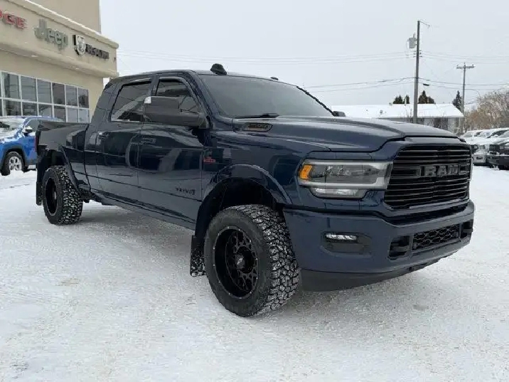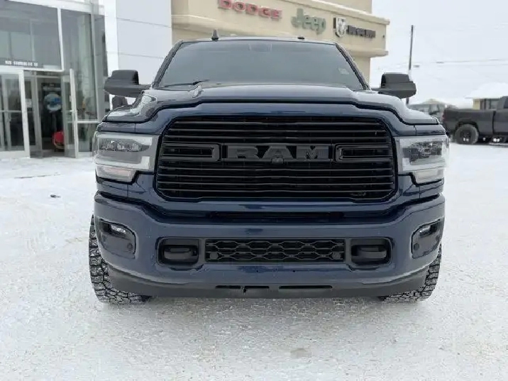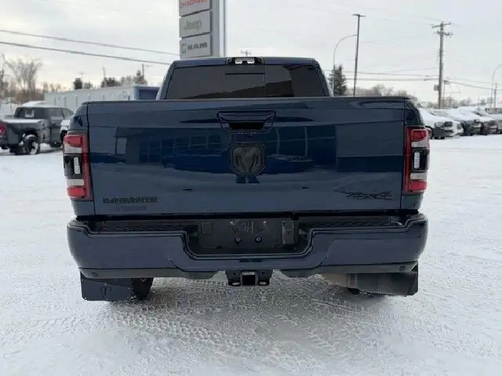- TIRES: LT285/60R20E OWL ON-/OFF-ROAD,220-AMP ALTERNATOR,LARAMIE LEVEL B EQUIPMENT GROUP -inc: Mirror-Mounted Aux Reverse Lamps Rain-Sensing Windshield Wipers Power Adjustable Pedals w/Memory Bright Power Tow Spotter Mirrors w/Memory Front Ventilated Seats Remote Tailgate Release 17-Speaker harman/kardon Premium Sound Automatic High-Beam Headlamp Control Exterior Mirrors w/Memory Settings Second-Row Heated Seats Radio/Driver Seat/Mirrors/Pedals Memory Radio: Uconnect 5 Nav w/8.4 Display Power Convex Aux Exterior Mirrors,TOWING TECHNOLOGY GROUP B -inc: Centre Stop Lamp w/Cargo Camera Mirror-Mounted Aux Reverse Lamps Surround View Camera System Bright Power Tow Spotter Mirrors w/Memory Exterior Mirrors w/Memory Settings Trailer Reverse Guidance Power Convex Aux Exterior Mirrors,PATRIOT BLUE PEARL,MONOTONE PAINT,POWER SUNROOF,NIGHT EDITION -inc: Mirror-Mounted Aux Reverse Lamps Black RAM's Head Tailgate Badge Wheels: 20 x 8 Black Aluminum Black Headlamp Bezels Body-Colour Door Handles Body-Colour Front Bumper Painted Rear Bumper Body-Colour Grille Surround Black Interior Accents Black Exterior Mirrors Power Convex Aux Exterior Mirrors Black Wheel Centre Hub Tires: LT285/60R20E OWL On-/Off-Road Black Exterior Badging Exterior Mirrors w/Memory Settings Grille w/Gloss Black Billets & Accents Black Power Tow Spotter Mirrors w/Memory Black Taillamp Bezels,ENGINE: 6.7L CUMMINS I-6 TURBO DIESEL -inc: Selective Catalytic Reduction (Urea) Dual 730 Amp Maintenance Free Batteries Cummins Turbo Diesel Badge Heavy Duty Engine Cooling Supplemental Heater 220-Amp Alternator MOPAR Winter Front Grille Cover Tow Hooks Diesel Exhaust Brake Front Bumper Sight Shields Capless Fuel-Filler,WHEELS: 20 X 8 BLACK ALUMINUM,PROTECTION GROUP,RADIO: UCONNECT 5 NAV W/12.0 DISPLAY -inc: Off-Road Info Pages Disassociated Touchscreen Display HD Radio 12 Touchscreen GPS Navigation SiriusXM w/360L On-Demand Content All Radio-Equipped Vehicles Connected Travel & Traffic Services All R1 High Radios Alexa Built-In,LED BED LIGHTING,BLACK LEATHER-FACED FRONT VENTED BUCKET SEATS -inc: Bucket Seats Full-Length Upgraded Floor Console,TOW HOOKS,REAR AUTO-LEVELLING AIR SUSPENSION -inc: Air Suspension Decal,TRANSMISSION: 6-SPEED AUTOMATIC -inc: Bright Accent Shift Knob,IP-MOUNTED AUXILIARY SWITCHES -inc: Dash Pass-Thru Wire Circuits,QUICK ORDER PACKAGE 2HH LARAMIE -inc: Engine: 6.7L Cummins I-6 Turbo Diesel Transmission: 6-Speed Automatic,5TH WHEEL/GOOSENECK TOWING PREP GROUP,GVWR: 4 535 KGS (10 000 LBS) (STD),3.73 REAR AXLE RATIO (STD),CENTRE STOP LAMP W/CARGO CAMERA,ANTI-SPIN DIFFERENTIAL REAR AXLE,Four Wheel Drive,Tow Hitch,4-Wheel Disc Brakes,Brake Assist,Power Steering,ABS,Aluminum Wheels,Trip Computer,Leather Seats,Remote Engine Start,Passenger Illuminated Visor Mirror,Intermittent Wipers,Woodgrain Interior Trim,Passenger Air Bag Sensor,Front Side Air Bag,Heated Front Seat(s),Climate Control,Trip Computer,Variable Speed Intermittent Wipers,Leather Steering Wheel,Bluetooth Connection,Power Folding Mirrors,Passenger Adjustable Lumbar,Power Door Locks,Tire Pressure Monitor,Driver Adjustable Lumbar,Keyless Start,Power Door Locks,Auto-Dimming Rearview Mirror,Heated Steering Wheel,Keyless Start,Power Mirror(s),Pass-Through Rear Seat,Traction Control,Power Driver Seat,WiFi Hotspot,Requires Subscription,Rear Defrost,Child Safety Locks,Driver Illuminated Vanity Mirror,Rear Head Air Bag,Front Head Air Bag,Adjustable Pedals,Stability Control,Rear Bench Seat,Back-Up Camera,Fog Lamps,Driver Vanity Mirror,Premium Sound System,Adjustable Steering Wheel,Rear Parking Aid,Power Door Locks,Power Door Locks,Keyless Entry,Premium Sound System,LED Headlights,MP3 Capability,Heated Mirrors,Traction Control,Satellite Radio,Power Windows,Integrated Turn Signal Mirrors,Multi-Zone A/C,AM/FM Stereo,Conventional Spare Tire,Automatic Headlights,Smart Device Integration,Auxiliary Audio Input,Passenger Vanity Mirror,Power Passenger Seat,Bluetooth Connection,A/C,Cruise Control,Driver Air Bag,Premium Synthetic Seats,Power Windows,Split Bench Seat,Daytime Running Lights,Steering Wheel Audio Controls,Keyless Entry,Privacy Glass,Power Mirror(s),Passenger Air Bag,Security System,Floor Mats,Smart Device Integration,Universal Garage Door Opener,Immobilizer