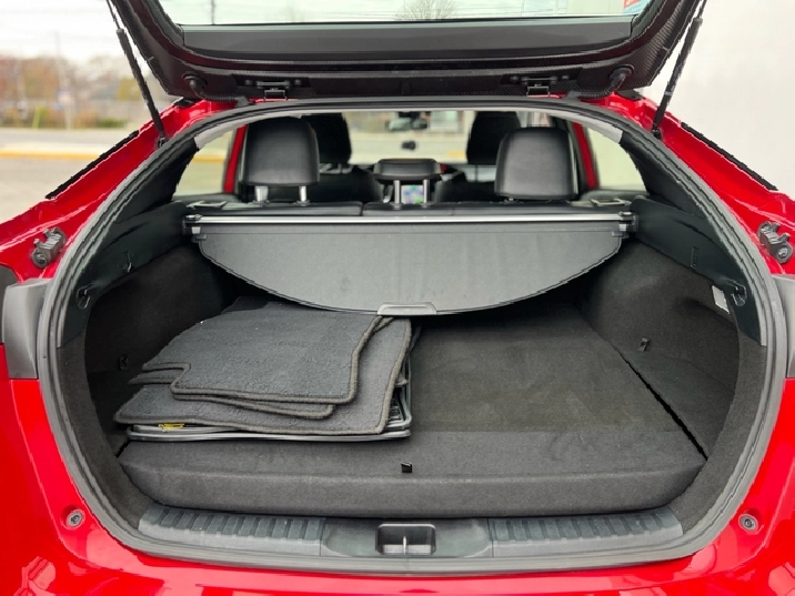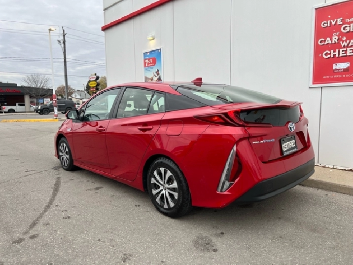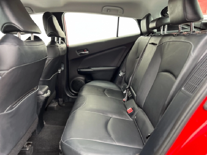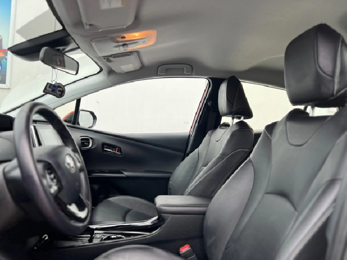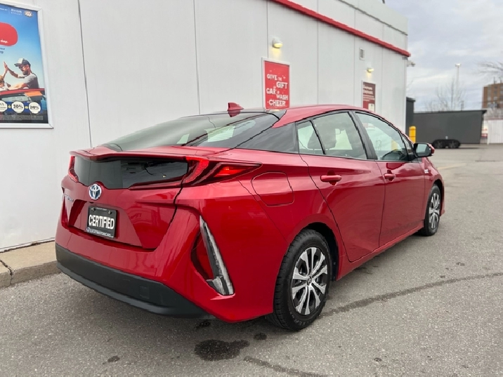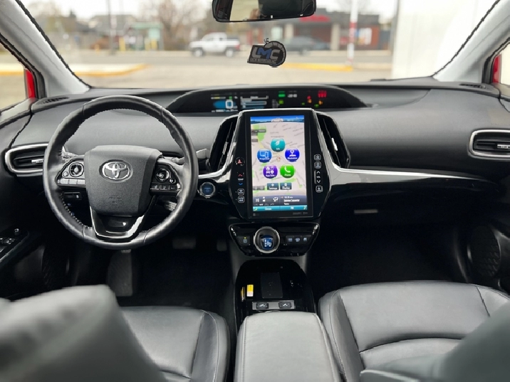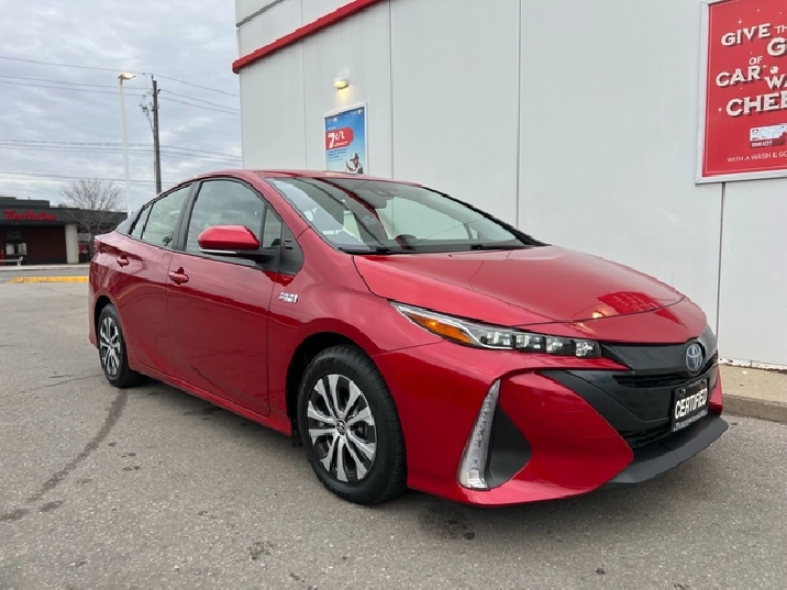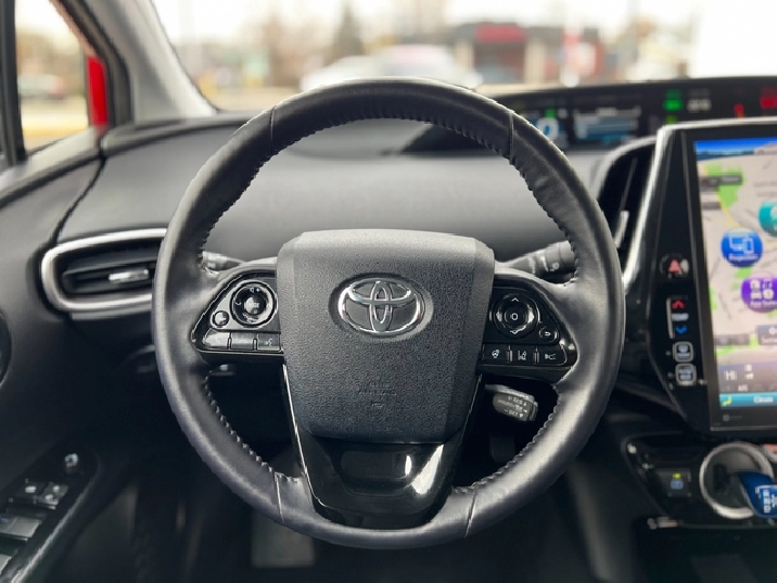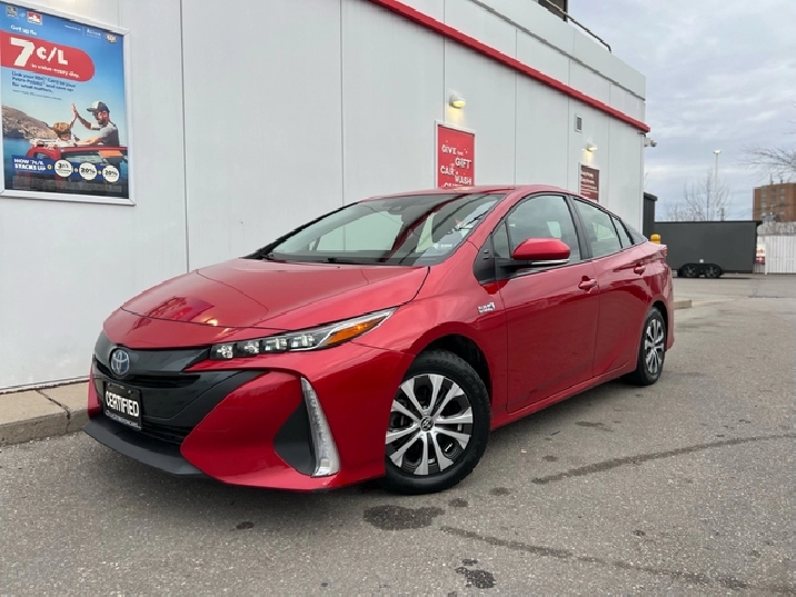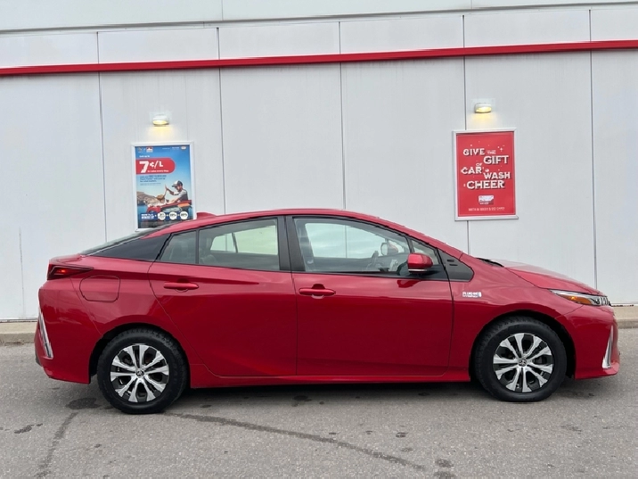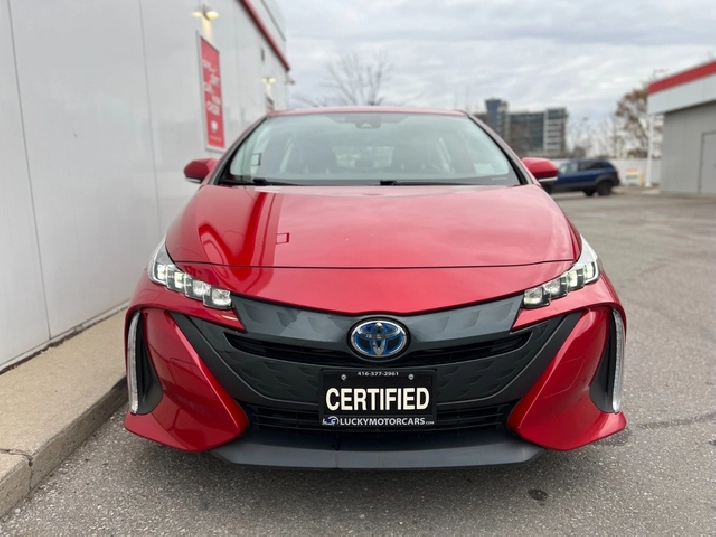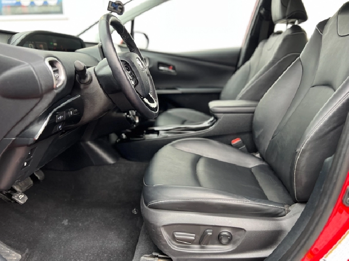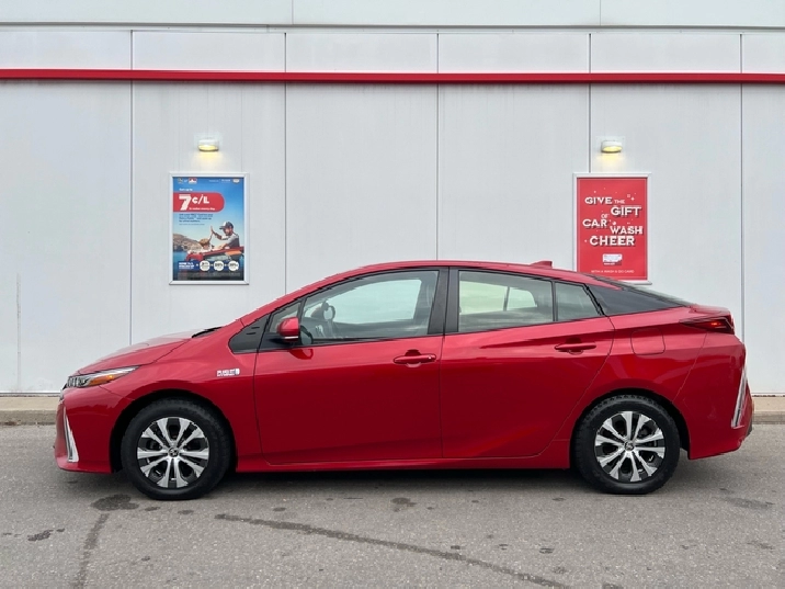 This is the 2022 Prius Prime — the plug-in hybrid with a mean streak, dipped in deep metallic Red, locked down with a black leather interior, and specced like someone walked into Toyota and demanded everything.