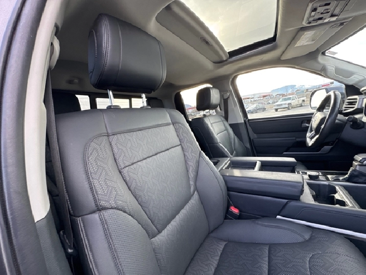 Our Tundra's trim level is Limited. With a commanding presence, this Tundra Limited comes very well equipped with a luxurious interior featuring Softex heated and cooled front seats, stylish aluminum wheels, a massive 14 inch touchscreen thats paired with wireless Apple CarPlay and Android Auto, wireless charging, SiriusXM, Toyota Multimedia, and proximity keyless entry. This truck also includes a heated leather steering wheel, a digital rear view mirror, LED headlights and fog lights, power front seats, a heavy-duty trailer hitch receiver, dual zone climate control, a power sunroof, an easy lower & lift tailgate, and Toyota Safety Sense 2.5 technology which adds blind spot detection, forward collision warning, intuitive park assist, lane departure alert with edge detection and steering assist, automatic highbeam assist, dynamic radar cruise control and so much more! This vehicle has been upgraded with the following features: Sunroof, Cooled Seats, Wireless Charging, SofTex Seats, Heated Seats, Heated Steering Wheel, Aluminum Wheels.