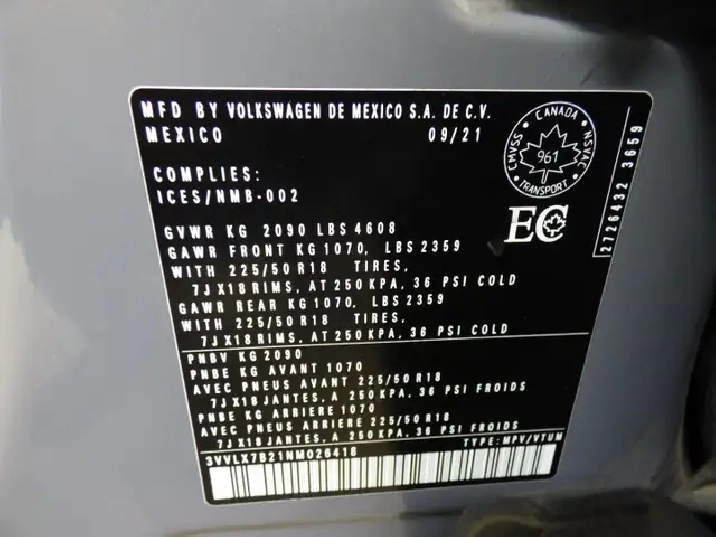NIV: 3VVLX7B21NM026418