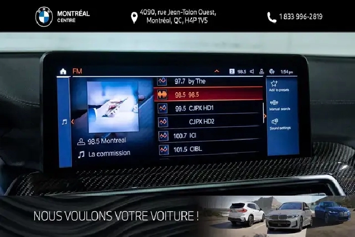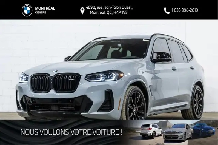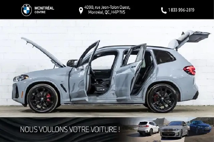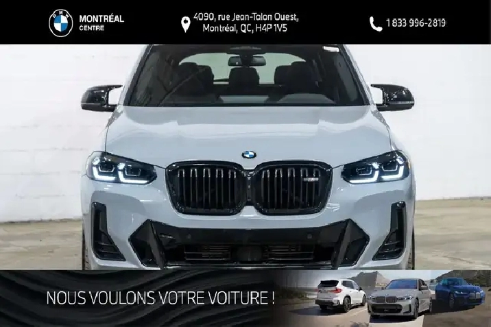 Sales tax, freight and preparation charges, as well as administrative and registration fees, are not included in the displayed price. Questions? Call/text 514-731-7871 or email us at [email protected]. Located at 4090 Jean-Talon Street West in Montreal, Quebec, BMW Montreal Centre has proudly served the Greater Montreal area since 1970, offering a wide selection of new and certified pre-owned vehicles, along with comprehensive sales, service, repair, and parts support.