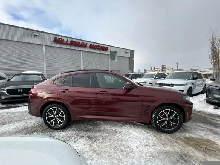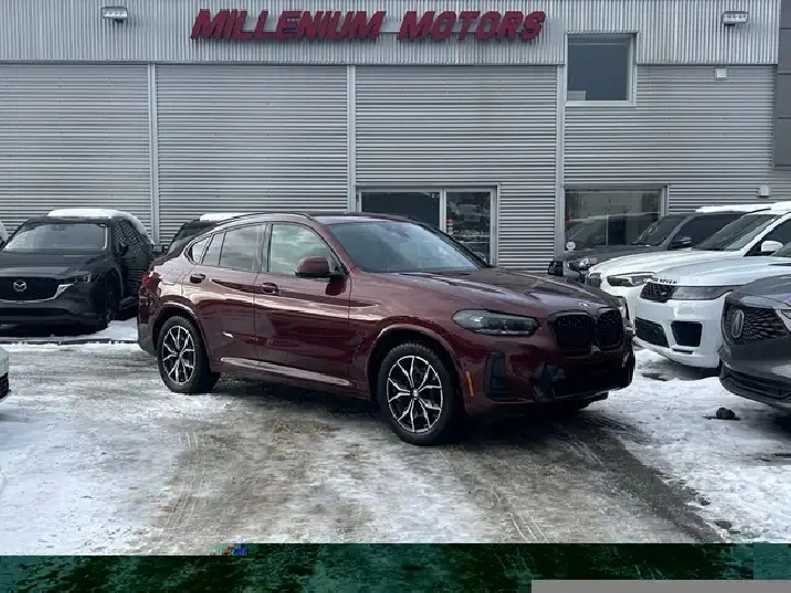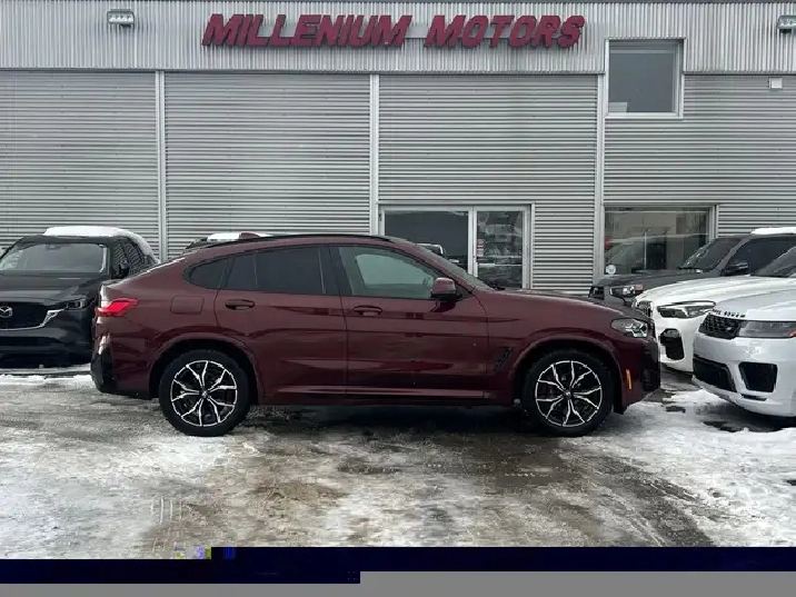2023 BMW X4 xDRIVE30i M-SPORT PKG AWD SUV, 3.0L TURBO AUTOMATIC WITH PADDLESHIFT, BURGANDY EXTERIOR WITH FULL BROWN LEATHER INTERIOR, EQUIPPED WITH NAVIGATION, HEADS UP DISPLAY, 360 CAMERA, PANORAMIC SUNROOF, COMFORT ACCESS PKG, DRIVERS ASSISTANCE PKG, SMART KEY ENTRY WITH PUSH BUTTON START, REMOTE START, HEATED FRONT POWER SEATS - DRIVERS MEMORY, HEATED STEERING WHEEL, DUAL ZONE CLIMATE CONTROL WITH A/C, POWER LOCKS/MIRRORS/WINDOWS AND TAILGATE, 19in. BLACK ALLOY WHEELS WITH RED CALIPERS, SPORT-ECO MODE, PREMIUM HARMON KARDON AUDIO WITH SXM RADIO, APPLE CARPLAY, ANDROID AUTO, BLUETOOTH, USB AND AUX INPUT, PARK ASSIST, TRACTION AND CRUISE CONTROL,TELESCOPIC STEERING, AUTO STOP/START, 3M, PRIVACY GLASS AND MORE. THIS PREMIUM X4 IS IN EXCELLENT SHAPE ALL AROUND, ONE OWNER ACCIDENT FREE LOCAL SUV. CONTACT US DIRECTLY @ 403-735-6050 TO BOOK YOUR TEST DRIVE OR FOR ANY FURTHER DETAILS. STOCK # P52033