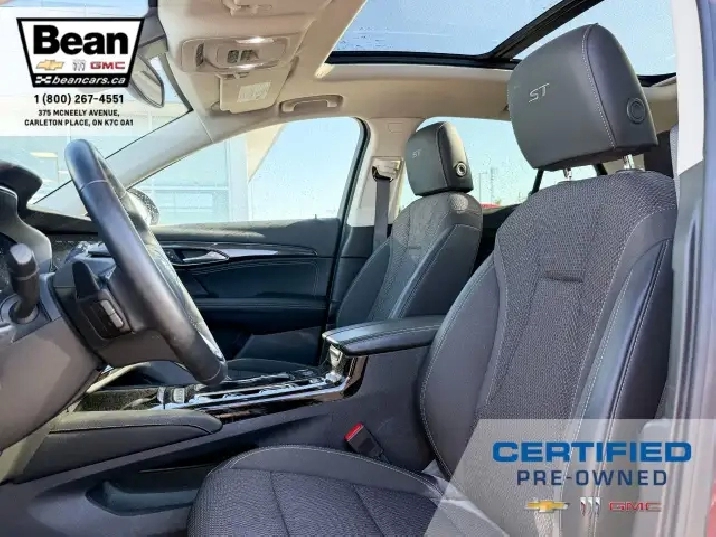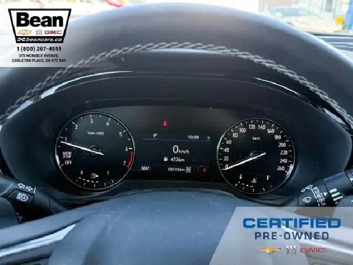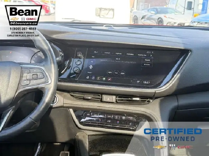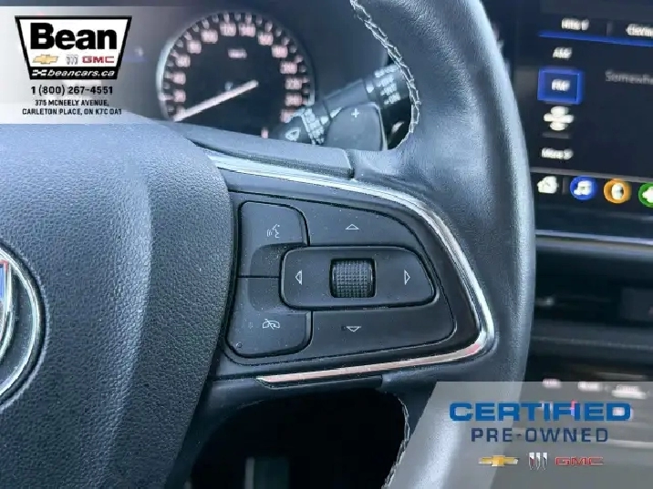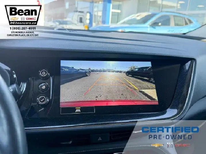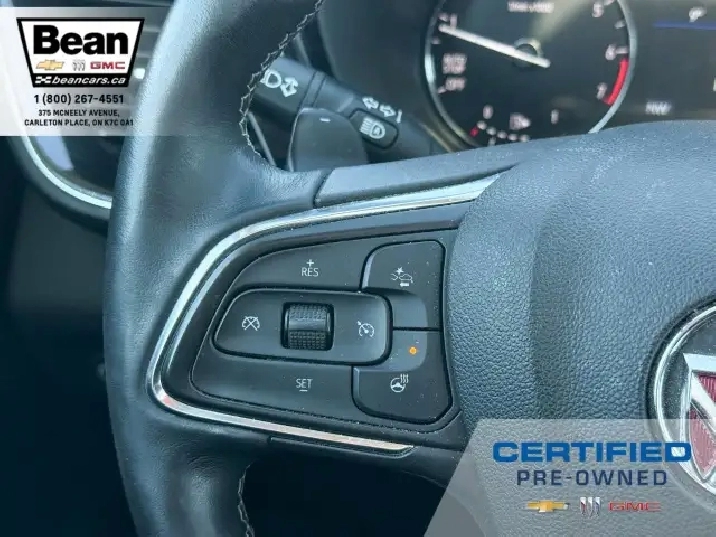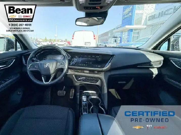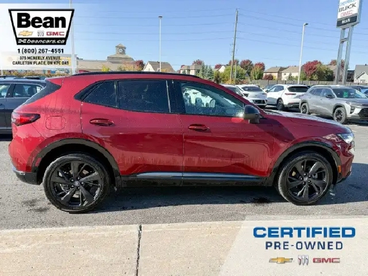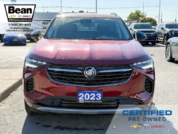 WOW! This Envision is super sharp with its Cinnabar Metallic exterior colour that will be sure to turn some heads! This SUV is a local one owner trade that was originally purchased at our dealership and was always maintained in our service department and for an added peace of mind it also has a clean Carfax! It is the Preferred trim level with added Sport Touring package that will be sure to add some pizazz to this ride and also has the Buick Driver Confidence, Comfort and Convenience and the Envision Driver Confidence packages that makes this Envision not just great looking but comfortable and safe at the same time! The Sport Touring Package includes a custom front grille, body coloured door handles, black roof rails, dark gloss finish mouldings and wheel arches, 20 dark finish alloy wheels, flat bottomed heated leather wrapped steering wheel and ST badging on the exterior and etched into the front head rests. The Buick Driver Confidence Package includes front pedestrian braking, lane keep assist with lane departure warning, forward collision alert, automatic emergency braking, following distance indicator and Intellibeam headlamps. The Envision Driver Confidence Package includes lane change alert with side blind zone alert and rear cross traffic alert. The last package is the Comfort and Convenience that has a hands free power liftgate, heated steering wheel, heated driver and passenger seats, remote vehicle start, dual zone climate control, 10.2 diagonal Buick infotainment system, 7 speaker enhanced audio system with amplifier, air quality indicator and automatic air quality indicator. This Envision has it all and is ready for its new home!