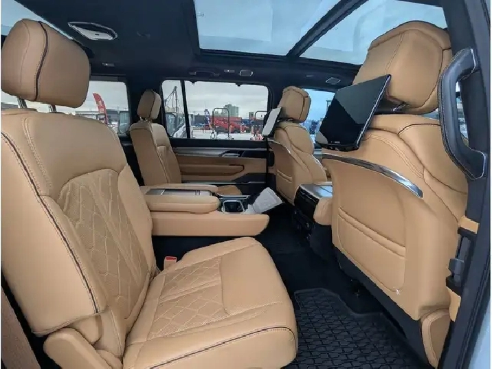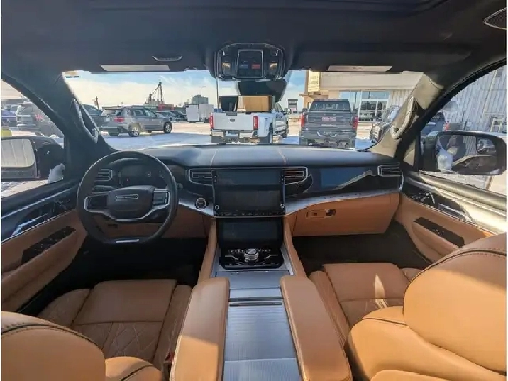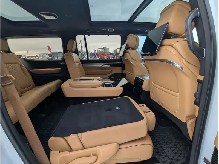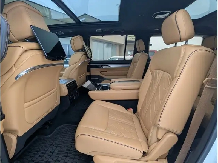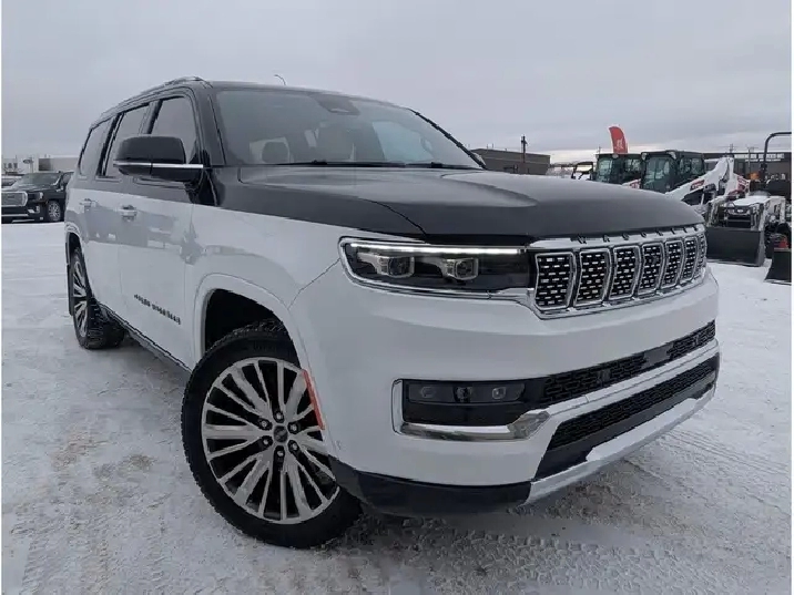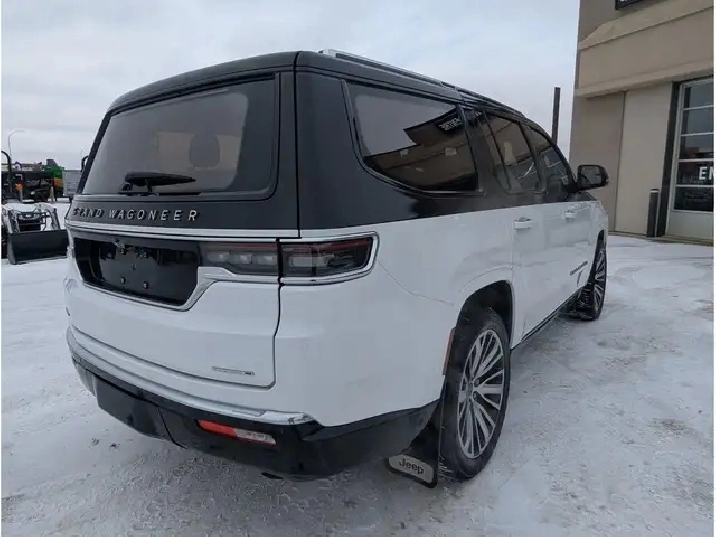 2023 Jeep Grand Wagoneer Series III, 3.0L V6 Gas Engine, 4x4, 7 Passenger, Touchscreen Navigation, Panoramic Sunroof, Driver/Passenger Headrest Screens w/ HDMI/USB Compatibility, Memory/Massage Heated/Cooled Leather Bucket Seats, Heated/Cooled Rear Seats, Heated Steering Wheel, Remote Start/Universal Home Remote, Backup Camera/Alarm, Front/Rear/360 Park Assist, Ambient Lighting, Tow/Haul Mode, Muliterrain/Eco/Valet Modes, Auto Start/Stop, Adaptive Cruise Control, Active Park Assist, Active Blind Spot Assist, Front Collision Alert, Lane Depart/Centering Alert, BLIS - Cross Traffic Alert, Speed Warning, Hill Descent Control, Hill Start Assist, Rear Seat Check Reminder, Rain Sensing Wipers, SOS Post Crash Alert, Refrigeration Compartment in Centre Console, Dual Exhaust, Power Running Boards, Vinyl Floor w/ Carpet Mats, LED Headlights, Fog Lights, Power Liftgate, Memory Adjust Folding/Heated Mirrors w/ Signal, Dual/Rear Climate Controls, Apple Carplay, Android Auto, Alexa, AM/FM, SiriusXM, Bluetooth, Steering Wheel Mounted Audio Controls, Voice Command & Recognition, USB Ports, 12V, AC Plug, Power Rear Window, Power Pedals, Trailer Hitch, 22 Rims
