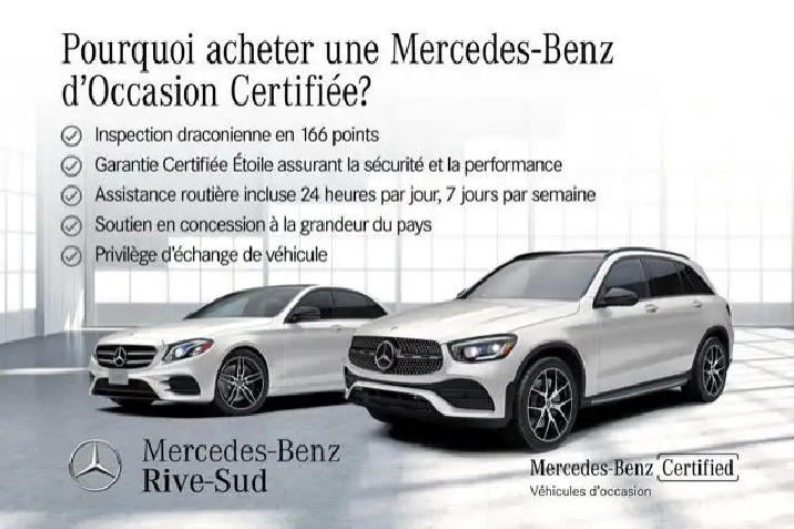 CERTIFICATION INCLUSE DANS LE PRIX AFFICHÉ. Les véhicules certifiés sont couverts par une Garantie Certifiée Étoile de 2 ans ou 40 000km. Elle offre une couverture sur les composants principaux et le groupe motopropulseur, ainsi qu'une assistance routière. Vous avez aussi la possibilité d'ajouter une garantie prolongée allant jusqu'à 7 ans / 160 000km.