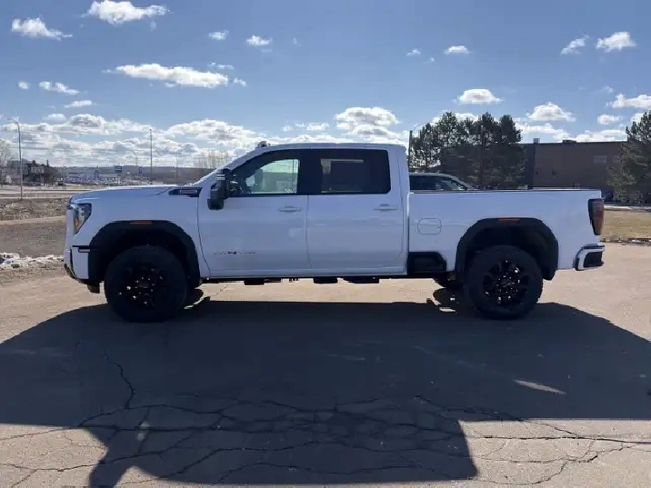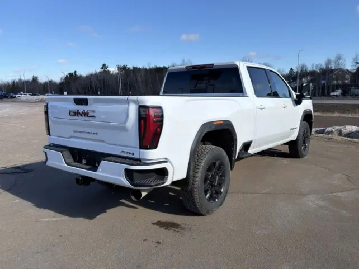 Our Sierra 2500HD's trim level is AT4. This trim rewards you with the X31 Off-Road Package built for rugged adventures with skid plates, Hill Descent Control, off-road suspension, and Rancho twin-tube shocks, plus red recovery hooks for added capability. It comes equipped with the Sierra HD Pro Safety suite, featuring Automatic Emergency Braking, Lane Departure Warning, Forward Collision Alert, and more, alongside advanced trailering technology like Hitch Guidance with Hitch View, the ProGrade Trailering System, and a spray-on bedliner with MultiPro Tailgate. Inside, youll find heated and ventilated leather seats, a Bose premium audio system, a 13.4" infotainment display with Google built-in, wireless Apple CarPlay/Android Auto, and wireless charging, while Adaptive Cruise Control, HD Surround Vision, and Trailer Side Blind Zone Alert add confidence on every drive. Rugged 20" black aluminum wheels, LED animated headlamps and taillamps, and body-colour accents complete the bold, off-road-ready design. This vehicle has been upgraded with the following features: Leather Seats, AT4 Premium Plus Package, Gooseneck/ 5th Wheel Prep Package.