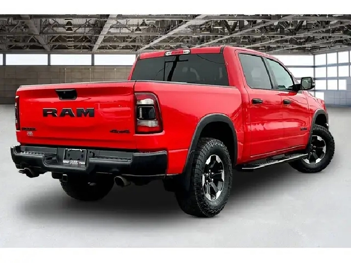 Bold in Flame Red and built to do more than just look the part, this 2023 Ram 1500 Rebel Crew Cab 4X4 brings the proven 5.7L HEMI V8 with 395 hp and 410 lb-ft of torque, giving you that instant throttle response and confident pulling power whether you are towing, merging, or heading off the pavement. Inside, it strikes the right balance of durability and comfort with heated vinyl and cloth bucket seats, a heated steering wheel, a rear power sliding window, and the massive 12-inch Uconnect touchscreen with navigation, wireless Apple CarPlay and Android Auto, plus a 9-speaker Alpine system that adds a premium feel to every drive. Forward Collision Warning adds an extra layer of confidence in traffic and on longer highway runs. On the functional side, this Rebel is properly equipped with a Class IV hitch, 3.92 rear axle ratio for stronger off-the-line pull, and the Bed Utility Group with a deployable bed step to make loading and towing easier, while Mopar black side steps add both style and practicality. With One Owner and Clean Carfax history, this is the kind of Rebel buyers look for, strong V8 performance, the right options, and a bold spec that stands out on the road and holds its value.
