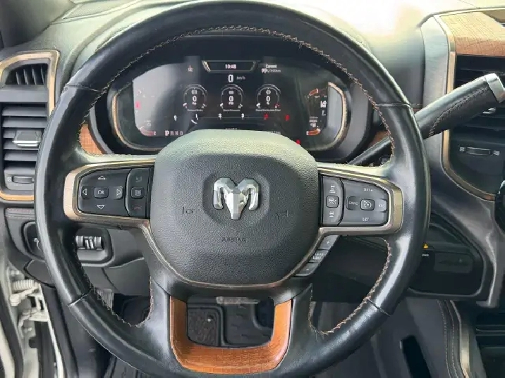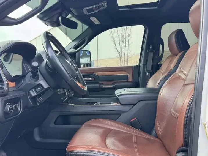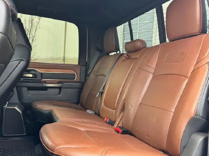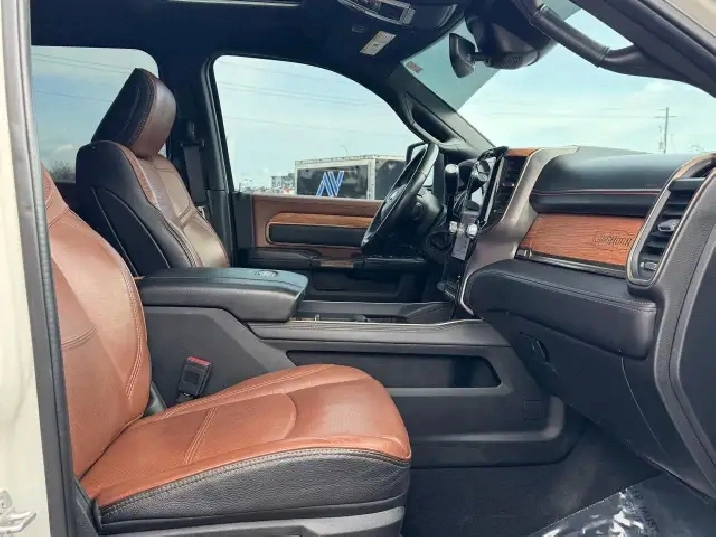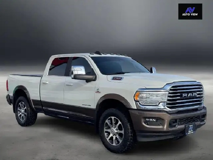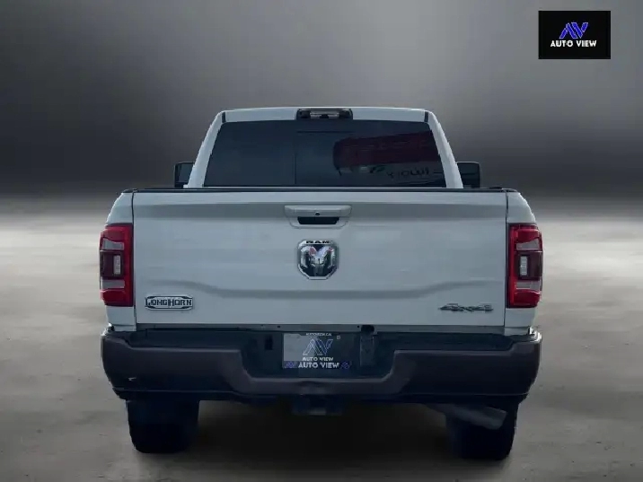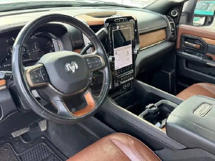 The 2023 Ram 2500 Limited Longhorn offers powerful engine choices, the 6.7L Cummins Turbo Diesel (370 hp/850 lb-ft torque), with available features like Auto-Level Rear Air Suspension and advanced towing tech, a Southwestern-inspired premium leather interior with real wood/barnwood accents, and distinctive styling with available two-tone paint, all while providing robust capability for hauling and towing.