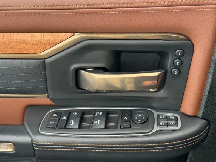 Interior: Mountain Brown theme, 100% leather seats with filigree stitching, real barnwood accents, heated/cooled front seats, heated rear seats, dual-zone climate, 12-inch Uconnect touchscreen.
