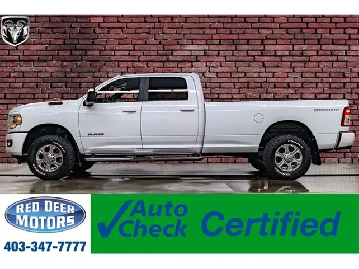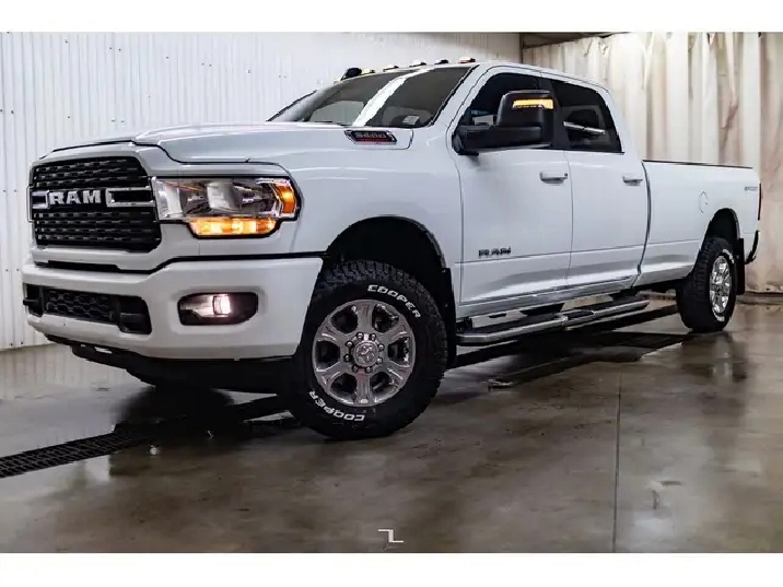 This 2023 Ram 3500 4x4 Crew Cab Big Horn Sport Longbox is powered by a 6.4L HEMI engine that is paired to an 8-speed automatic transmission. This 3500 is equipped with cloth bucket seats, power adjustable seat, split folding rear seats, rear view camera, keyless entry, traction control, halogen headlights, front & rear park assist, fog lights, Bluetooth connectivity, Apple CarPlay, Google Android auto, navigation, bed liner & much more. This Ram carries the balance of a 5 year/100,000 km warranty.