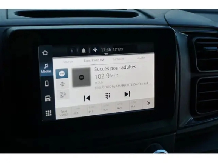 - Oui avec recherche et balayage, montre, volume asservi à la vitesse, prise d'entrée audio auxiliaire, commandes au volant, commandes vocales et commande de mémoire externe