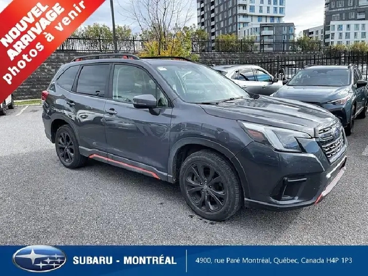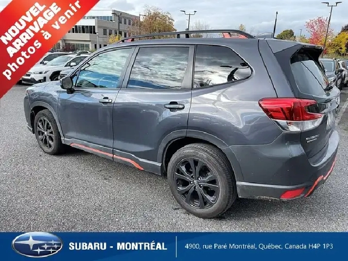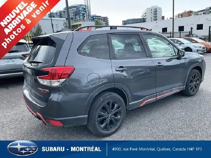 Cette Subaru Forester Sport Eyesight est un retour de location ayant eu un seul propriétaire avec bas mileage et est en très bon état général. Le Forester est le VUS qui sait répondre à tous vos besoins. Agile en ville, doté de qualités hors pair en offroad, il est également le plus logeable de sa catégorie et vous permettra de partir en voyage avec vous, votre famille et tout votre matériel. Le modèle Forester Sport vient entre autres avec les sièges chauffants, le volant chauffant, le toit ouvrant, des jantes en aluminium noires de 18 pouces, les phares automatiques, une caméra de recul, l'Apple Carplay/Android Auto, une prise USB et le système Bluetooth. Et bien sûr, la légendaire traction intégrale Subaru !!! Vitres teintées . . This Subaru Forester Sport Eyesight is a one owner low mileage rental return and is in very good overall condition. The Forester is the SUV for all your needs. Agile in the city, with outstanding off-road qualities, it's also the most spacious in its class, allowing you to take your family and all your gear on the road. The Forester Sport model comes with heated seats, heated steering wheel, sunroof, 18-inch black aluminum wheels, automatic headlights, rearview camera, Apple Carplay/Android Auto, USB and Bluetooth. And of course, legendary Subaru all-wheel drive!!!! Tinted windows