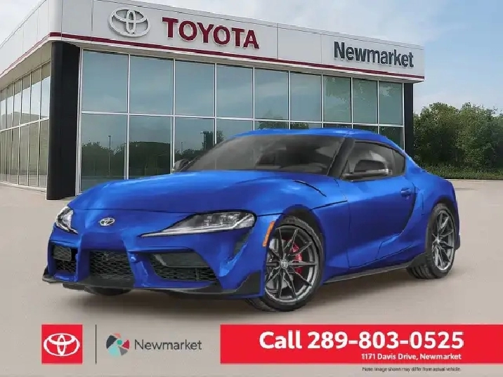Get behind the wheel of the stunning blue 2023 Toyota GR Supra 3.0T Coupe. This rear-wheel drive dynamo offers precision handling and exhilarating performance, making each drive an adventure. The GR Supra's striking coupe design exudes both power and elegance. Its aerodynamic profile is complemented by stylish alloy wheels and a host of thoughtful features. Inside, the GR Supra boasts a premium interior highlighted by leather seats, a leather steering wheel, and other refined touches, such as a leather gear shifter. Every element has been meticulously crafted, including heated mirrors and leatherette door trim. The thoughtful design extends to the state-of-the-art navigation system and the convenience of power windows and seats. You're equipped with the latest technology, including a heads-up display and a backup camera for seamless parking. Stay connected with Bluetooth integration, satellite radio, and smart device integration, which keeps entertainment at your fingertips. Safety features like lane assist, brake assist, and parking sensors provide peace of mind, enhancing every journey. With heated front seats and a manual transmission, you’re ensured both comfort and control. Perfect for driving enthusiasts or those looking to make a statement on the road, the Toyota GR Supra 3.0T in blue promises to elevate your driving experience. Contact us now to learn more and take this extraordinary coupe for a test drive! --Pricing of vehicle will increase by $2500 with any other form of payment, including but not limited to cash, bank draft, certified cheque, EFT, or credit card.