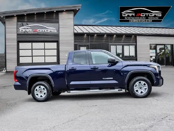 2023 Toyota Tundra SR5 Double Cab 4x4 – 3.5L Twin-Turbo V6 – Only 64,513 km – Powerful Work Truck in Excellent ConditionLooking for a powerful, reliable, and well-equipped full-size pickup? Check out this 2023 Toyota Tundra SR5 Double Cab 4x4 with only 64,513 km, available now at Orr Motors in Ottawa. This truck is ideal for towing, hauling, and daily driving, thanks to its robust 3.5L twin-turbo V6, spacious Double Cab, and durable 6.5-foot bed.Key Features:3.5L Twin-Turbo V6 Engine – 389 hp and 479 lb-ft torque10-Speed Automatic Transmission4x4 Drivetrain – Built for Canadian winters6.5-Foot Composite Bed with Tow Package and Integrated Brake ControllerDouble Cab with Room for Work Crew or FamilyToyota Safety Sense 2.5 – Pre-Collision System, Lane Keep Assist, Radar Cruise ControlBlind Spot Monitor with Rear Cross-Traffic AlertBackup Camera with Dynamic Guidelines8” Touchscreen Display with Apple CarPlay & Android AutoPush-Button Start, Keyless Entry, Dual-Zone Climate ControlSpecs & Condition:Mileage: 64,513 kmDrivetrain: 4x4Fuel Type: GasolineBody Style: Double Cab PickupTransmission: AutomaticCondition: Excellent inside and outLocation: Orr Motors, Ottawa ON – Dealer #613-836-3333This 2023 Toyota Tundra SR5 is a rare find – combining modern tech, Toyota dependability, and true truck utility. Perfect for contractors, business owners, outdoor enthusiasts, or anyone who wants serious capability without compromising comfort.Why Buy From Orr Motors?Trusted Ottawa Dealership with Hundreds of 5-Star ReviewsAll Vehicles CarFax Verified and Fully InspectedCompetitive Financing Available OAC All Trades WelcomeCall 613-836-3333 or visit www.orrmotors.com to book your test drive today! **Advertised price is for finance purchase. *Every reasonable effort is made to ensure the accuracy of the information listed above. Vehicle pricing, incentives, options including standard equipment , and technical specifications listed is for the Year, Make and Model of the vehicle, and may not match the exact vehicle displayed. Please confirm with a sales representative the accuracy of this information.