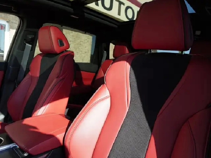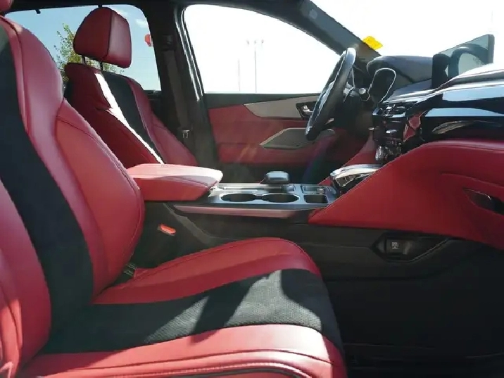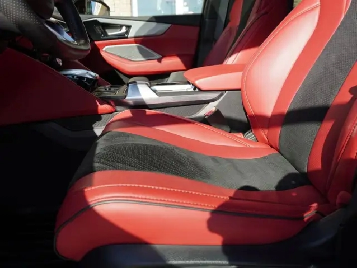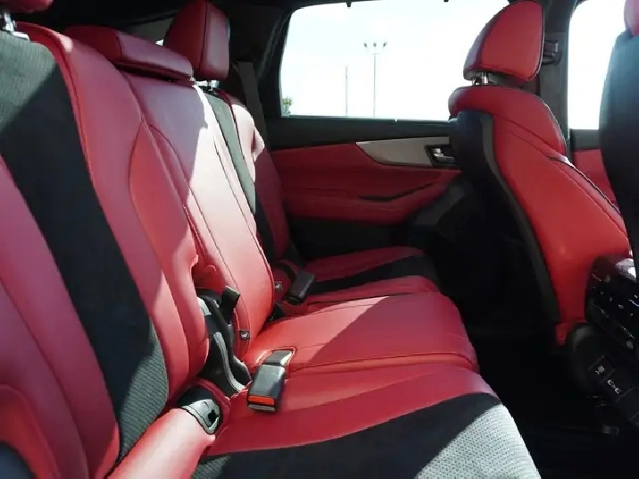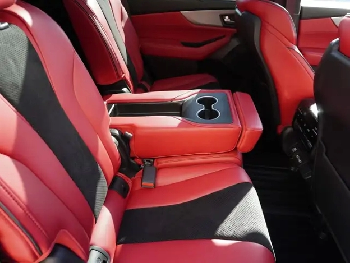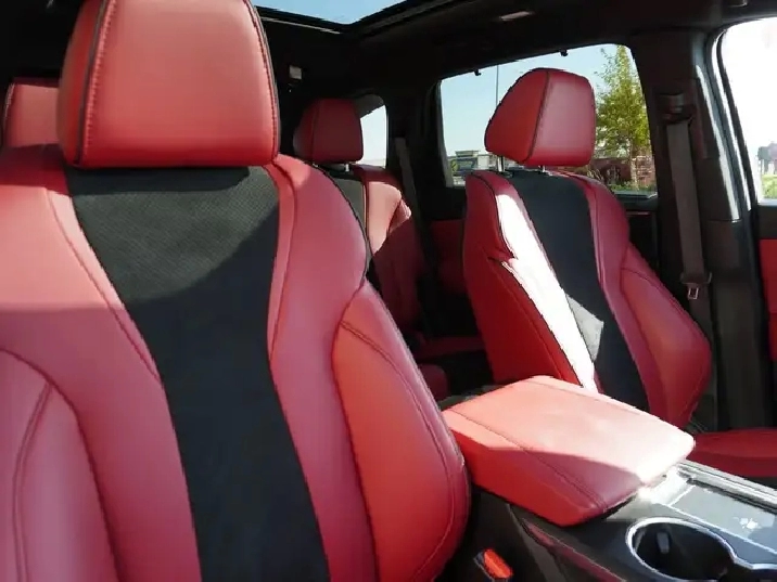 - Striking Red and Black Ultrasuede & Leather sport seats ventilated and heated for year-round comfort