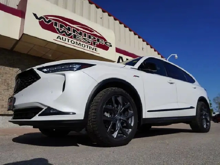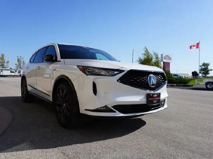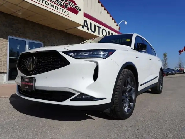 WOW, JUST IN, LOCAL MANITOBA TRADE, VERY LOW KMS AND WHAT A STUNNING CAR IN PLATINUM PEARL OVER STRIKING RED AND BLACK ULTRASUEDE INTERIOR, COMPLETELY STUNNING LUXURY SUV!!! If you've been searching for a luxury 3-row SUV that turns heads everywhere it goes and delivers thrilling performance with year-round confidence, your search ends here. This A-Spec Edition MDX is the ultimate blend of sporty styling, premium comfort, and cutting-edge technology all wrapped in Acura's legendary reliability. SAVE BIG ON THIS BEAUTY AT OVER $75,000 NEW! Save huge dollars for this as new Luxury SUV.