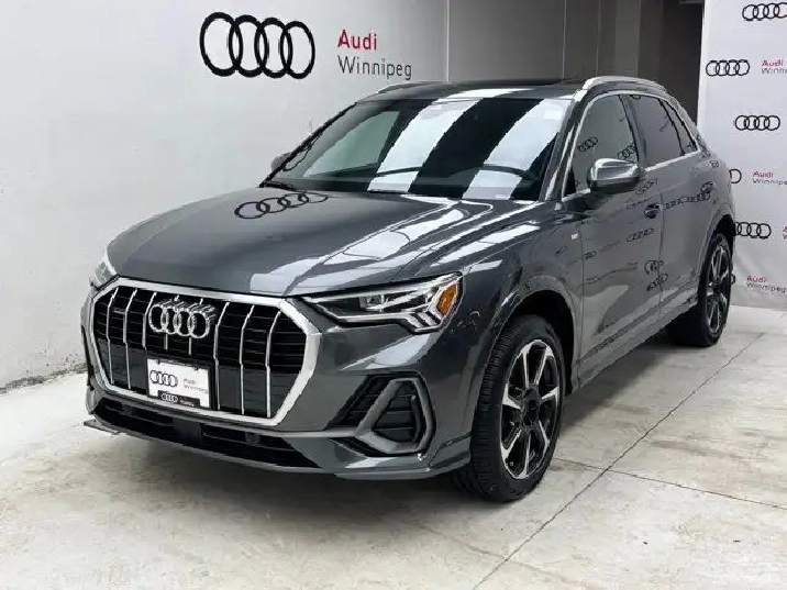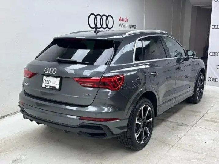 Treat yourself to the features you deserve in this low KM DEMO 2024 Audi Q3 with Quattro All-Wheel Drive that just arrived directly from Audi Canada in popular Progressiv trim! This compact SUV has a plethora of factory warranty remaining plus a very long list of features such as: heated leather seating w/driver seat memory, heated steering wheel, a huge panoramic sunroof, rear view camera, power tailgate, blind spot monitoring, lane departure warning and more.