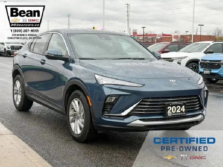 Drive in style with this 2024 Buick Envista Preferred in striking Ocean Blue Metallic! This one-owner vehicle comes with a clean Carfax and a fuel-efficient 1.2L 3-cylinder engine. Inside, youll enjoy heated seats and a heated steering wheel, remote start, and an 11 touchscreen with Apple CarPlay and Android Auto. Safety and convenience are covered with adaptive cruise control, lane keep assist, and an HD rear vision camera, while the 17 alloy wheels complete the sporty, modern look. This Envista perfectly blends comfort, technology, and confidence for every drive.