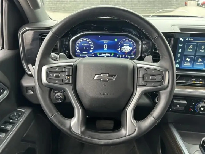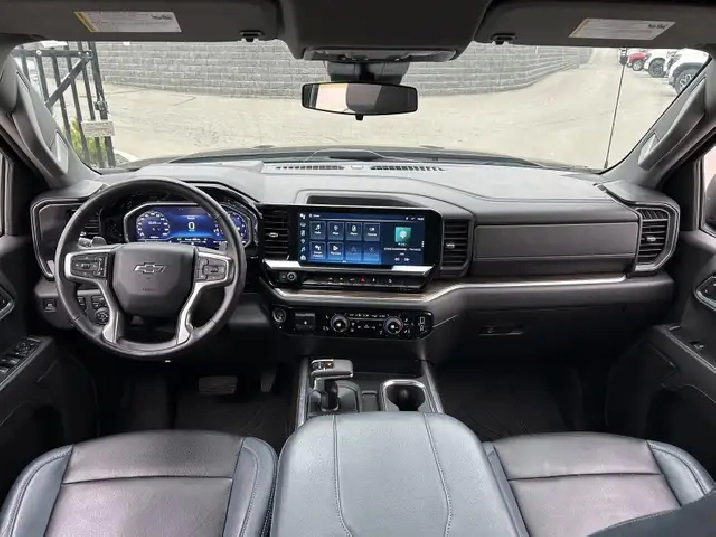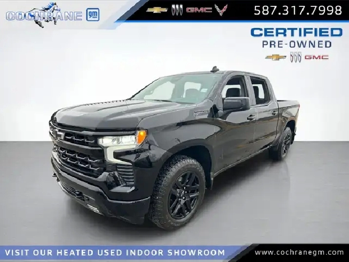 Our used 2024 Chevrolet Silverado 1500 RST Crew Cab 4X4 is muscular, stylish, and made to do more in Black! Motivated by a 5.3 Litre V8 supplying 355hp to a 10 Speed Automatic transmission for confident capability whether working hard or just showing off. A 2-speed transfer case enhances traction, and this Four Wheel Drive Chevy truck is a robust towing machine that can score approximately 11.8L/100km on the highway. Our Silverado builds on that solid foundation with a sophisticated design, LED lighting, fog lamps, alloy wheels, an EZ Lift power lock/release tailgate, a trailer hitch, a 120V outlet, and a black Bowtie on its bold grille. Designed to impress, our RST cabin is outfitted with heated cloth front seats, a 10-way power driver's seat, a heated-wrapped steering wheel, dual-zone automatic climate control, remote start, a rear defogger, keyless access/ignition, and an interior 120V outlet. Smart benefits, including a 12.3-inch driver display, a 13.4-inch touchscreen, Google Built-in, voice control, Wi-Fi compatibility, wireless Apple CarPlay/Android Auto, Bluetooth, and a six-speaker audio system, help you stay connected on the move. Chevrolet helps you stay safe with features such as automatic braking, lane-keeping assistance, forward collision warning, pedestrian detection, hitch guidance, an HD rearview camera, and more. It's time to raise the bar with our remarkable Silverado 1500 RST! Save this Page and Call for Availability. We Know You Will Enjoy Your Cochrane GM Test Drive Towards Ownership!
