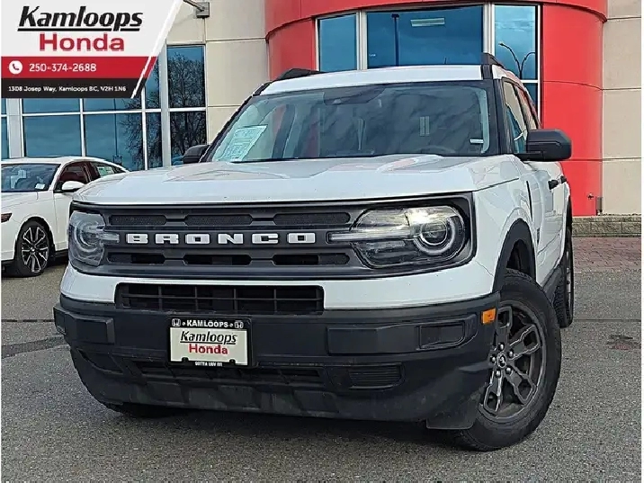 Pre-Owned 2024 Ford Bronco Sport Big Bend - Heated Front Seats | Backup Camera | Smart Device Integration | Cloth Interior This pre-owned 2024 Ford Bronco Sport Big Bend delivers rugged capability with everyday comfort, powered by a 1.5L Turbocharged Ecoboost engine, an 8-speed automatic transmission, and a 4x4 drive system. The cloth interior features heated front seats and smart device integration with Bluetooth connectivity. Safety provides peace of mind with a backup camera, collision mitigation, blind spot monitoring, and more! Every pre-owned vehicle in our inventory undergoes a thorough multi-point inspection, providing you with a detailed Carfax vehicle history report, ensuring you drive away with total confidence and peace of mind. With over 25 years of dedicated service to the greater Kamloops area, we take pride in offering our valued and diverse customers the finest selection of new and pre-owned Honda and non-Honda vehicles in Kamloops! Our committed Honda team members and Honda Certified technicians are here to make your shopping experience enjoyable, effortless, and rewarding. Whether you need a new Honda vehicle, parts or service for your current vehicle, Kamloops Honda is here to assist you with any of your automotive needs. Call or visit us at 1308 Josep Way, Kamloops, BC, to book or take a test drive today! *Doc Fee $695*