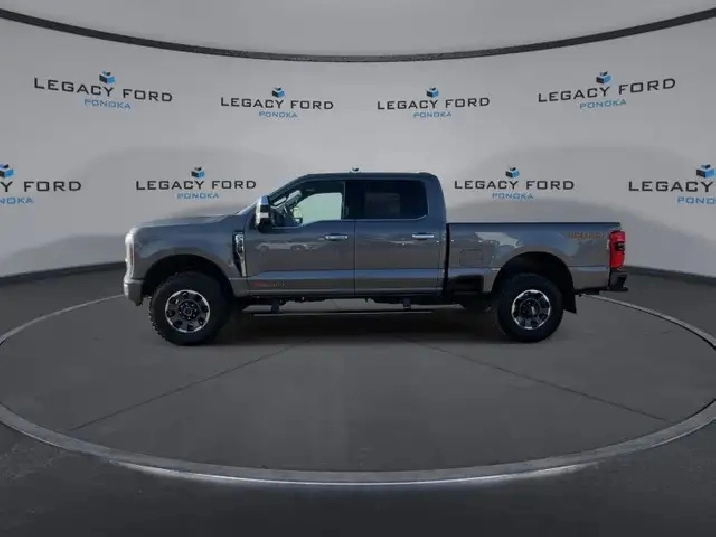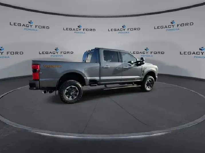 Our F-350 Super Duty's trim level is Platinum. This F-350 Platinum is embellished with chrome exterior accents and unique exterior styling, with power running boards, adaptive cruise control, a driver's heads-up display and retractable rear steps, along with Platinum-themed leather-trimmed heated and ventilated front seats with power adjustment, memory function and lumbar support, a heated leather-wrapped steering wheel, voice-activated dual-zone automatic climate control, power-adjustable pedals, a sonorous 8-speaker Bang & Olufsen audio system, and two 120-volt AC power outlets. This truck is also ready to get busy, with equipment such as class V towing equipment with a hitch, trailer wiring harness, a brake controller and trailer sway control, beefy suspension with heavy duty shock absorbers, power extendable trailer style mirrors, up-fitter switches, and LED headlights with front fog lamps and automatic high beams. Connectivity is handled by a 12-inch infotainment screen powered by SYNC 4, bundled with Apple CarPlay, Android Auto, inbuilt navigation, and SiriusXM satellite radio. Safety features also include lane keeping assist with lane departure warning, a surround camera system, pre-collision assist with automatic emergency braking and cross-traffic alert, blind spot detection, rear parking sensors, forward collision mitigation, and a cargo bed camera. This vehicle has been upgraded with the following features: Leather Seats, Tremor Off-road Package, Premium Audio, Sunroof, Reverse Sensing System, 18" Aluminum Wheels, Power Running Board.