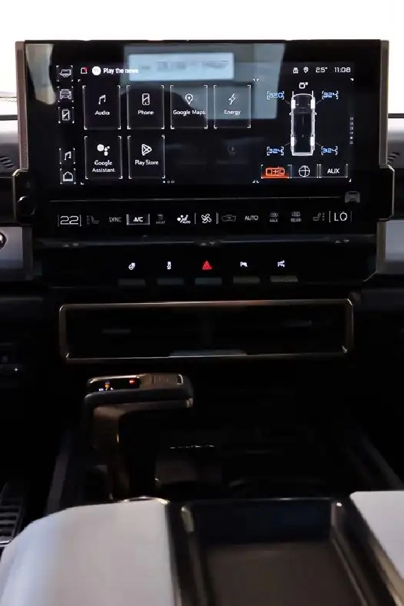- Éclairage avant distinctif comprend barre lumineuse HUMMER EV, animation de bienvenue et de départ, état de charge et clignotants