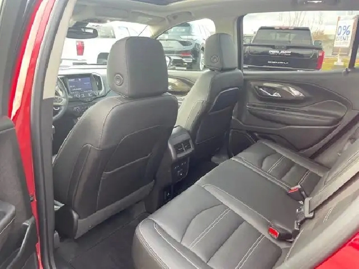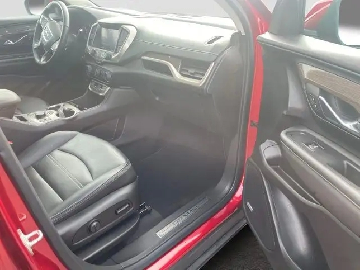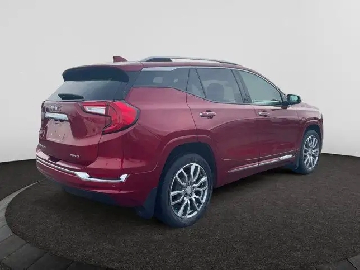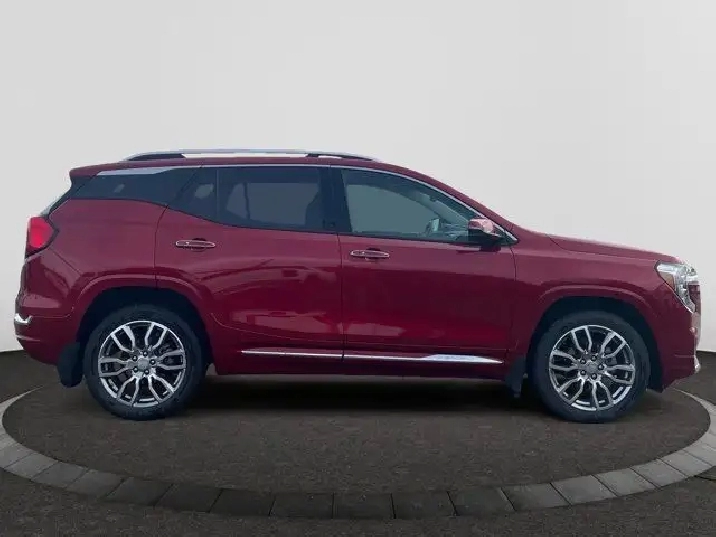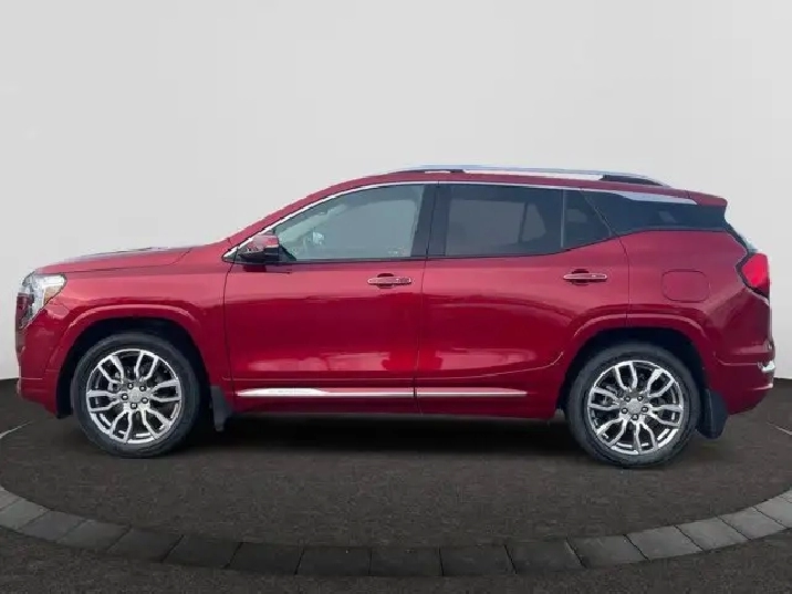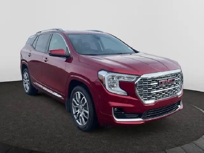 This AWD Volcanic Red Terrain Denali is the new top-of-the-line model bringing luxury to the compact crossover. This Denali has a 1.5L engine with a Jet Black interior color. Distinguished by its honeycomb chrome grille, accents of satin-finish chrome and 18 satin chrome-clad aluminum wheels. Standard side blind zone alert and rear cross traffic alert are included on the Terrain Denali. Equipped with the spacious interior that youd expect from a larger SUV, the Denali offers seating for 5 and over 63 cubic feet of cargo space. The interior is equipped with heated, perforated leather front bucket seats and a MultiFlex 60/40 split-folding rear seat with a 3 position recline and the ability to slide almost 8 inches.