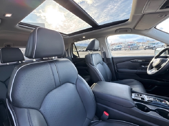 Our Pilot's trim level is Touring. Revel in luxury and refinement in this Pilot Touring, which comes standard with unique machined aluminum wheels, a dual-panel glass sunroof with a power sunshade, a sonorous 12-speaker Bose premium audio system, ventilated and heated front seats with power adjustment, lumbar support and memory function, perforated leather-trimmed seating upholstery, voice activated dual-zone front climate control, and a driver's heads up display. Connectivity is handled via a 9-inch infotainment screen with Honda Satellite-linked navigation, Apple CarPlay, Android Auto, and mobile hotspot internet access. Safety features include an aerial view camera system, HondaLink Assist Emergency SOS, blind spot detection, collision mitigation braking system with forward collision warning and rear cross traffic alert, lane keeping assist with lane departure warning, and front and rear parking sensors. This vehicle has been upgraded with the following features: Navigation, Cooled Seats, Leather Seats, Premium Audio, HUD, 4G Wi-Fi, Sunroof.