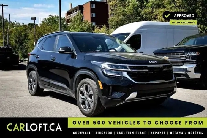 Our Seltos's trim level is EX. This Seltos EX steps things up with a glass sunroof, LED headlights, a heated steering wheel, and Sofino leather upholstery. Additional features include proximity keyless entry with push button start, remote start, climate control, heated front seats, cruise control, alloy wheels, and an 8-inch infotainment screen with Apple CarPlay and Android Auto. Safety features include blind spot detection, lane keeping assist with lane departure warning, front and rear collision mitigation, and a rearview camera. This vehicle has been upgraded with the following features: Sunroof, Heated Steering Wheel, Heated Seats, Apple Carplay, Android Auto, Blind Spot Detection, Lane Keep Assist.