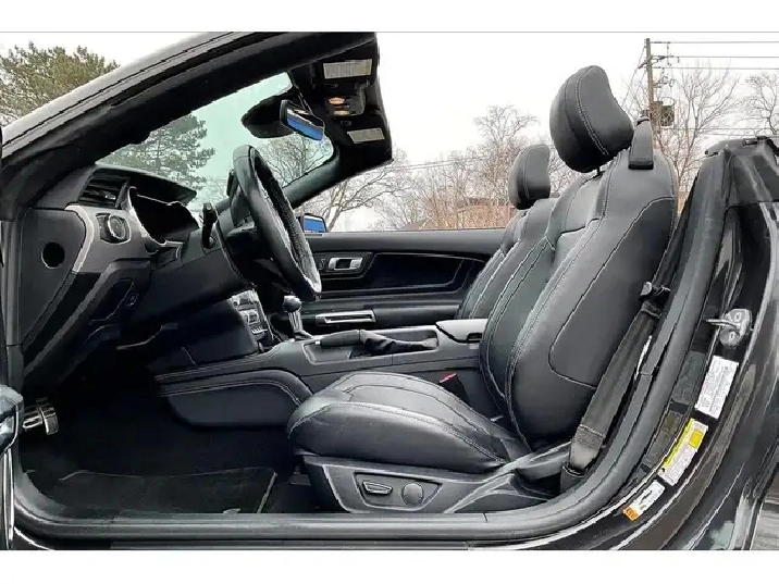 Drop the top and slide into a cockpit that feels built around you, with heated and ventilated leather seats that keep you comfortable on summer cruises and cool evenings alike, a refined fit that quiets wind when the roof is up, and thoughtful storage that keeps the essentials close. Tech elevates every drive, with SYNC 3 on a responsive touchscreen with voice activated navigation for clear guidance, a 12 speaker Bang & Olufsen system that turns the cabin into a private concert, and confidence from adaptive cruise control, lane keep assist, and forward collision warning that takes the edge off traffic. Outside, Dark Matter Gray Metallic pairs with the Black Accent Package for a menacing stance, while the 450 hp 5.0L V8, rear wheel drive balance, and Active Valve Performance Exhaust deliver the soundtrack and response enthusiasts crave. With One Owner Clean Carfax history, this GT Premium convertible is the open air V8 you will be proud to own.