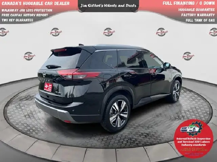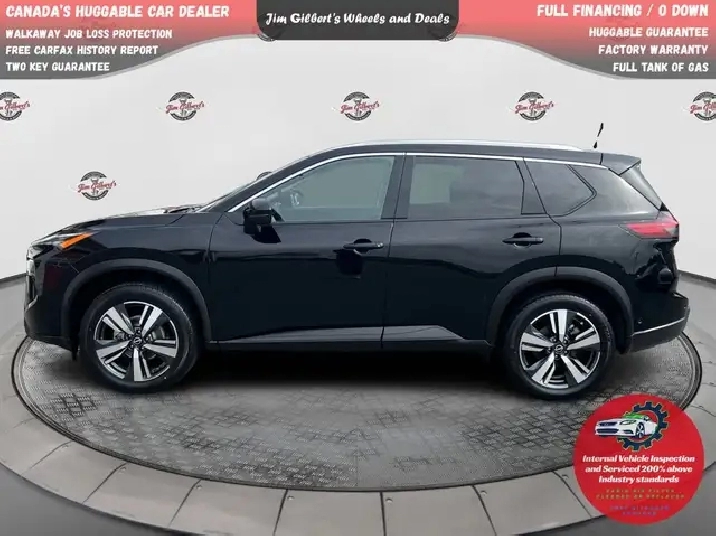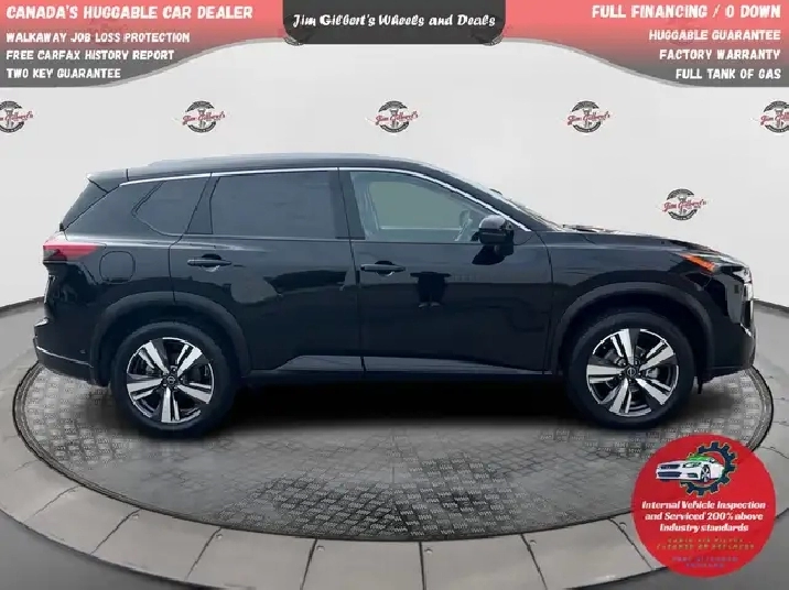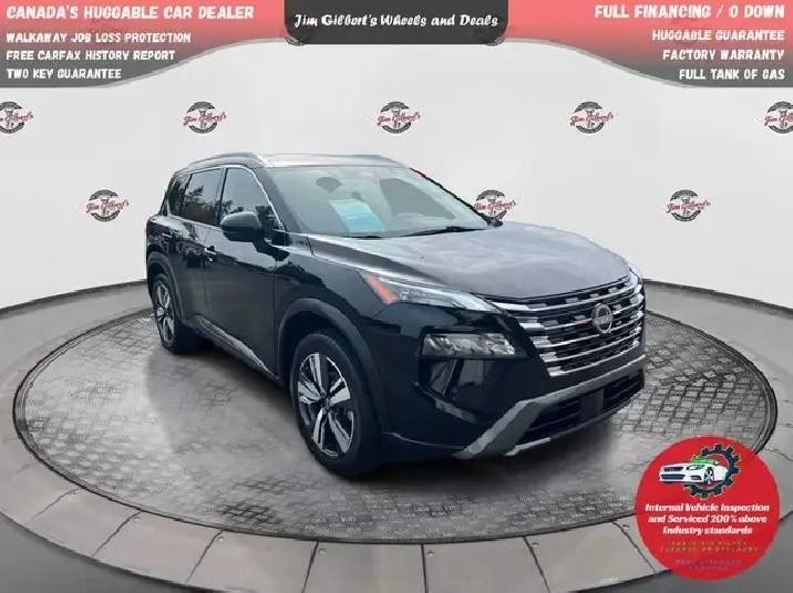 Less than $135 weekly all in, Drive it Away/0 DownFREE WINTER TIRES Ready for NB life? This Rogue SL AWD blends refined comfort with year-round confidence for riverside commutes, Costco runs, cottage trips, and stormy winter mornings — all for Less than $135/week All In, Drive it Away / $0 Down!FeaturesAWD confidence with drive-mode select; smooth, efficient turbo powerDual-panel sunroof; power liftgate; 19in. alloys; LED lightingLeather seating; heated front & rear seats; heated steering wheel; driver’s memory seatGoogle built-in infotainment on a large touchscreen; embedded navigation; wireless smartphone integration; digital dash360° Around View Monitor; front & rear park assist; remote startSafety Shield tech: blind-spot warning, rear cross-traffic alert, lane departure warning, rear automatic braking, automatic emergency braking with pedestrian detectionSmart cargo solutions; split-fold rear seat; remote keyless entry & push-button startBalance of factory warranty; certified & professionally detailedWhy Buy from Jim Gilbert’s Wheels & DealsFull Tank of Gas on deliveryBalance of Factory Warranty for extra peace of mindHuggable Guarantee — friendly, transparent, neighborlyComprehensive Inspection (200% above industry standards)CarFax Report includedTwo Key GuaranteeSpin-to-Win Gas PromoBest-in-class reconditioning; Nitrogen tire program; Guaranteed MVI; Professionally detailedLifestyle Fit (Fredericton / NB)From slushy spring thaws on the Westmorland to snowy night drives up to Crabbe Mountain, Rogue’s AWD, heated everything, and big-screen nav make NB travel easy. Quiet, comfy highway manners for Saint John and Moncton trips; compact-SUV agility for Downtown Fredericton parking.Call to ActionBook your test drive today and experience our Hug Guarantee. On-site financing, fast approvals, and fair trade values — see why we’re Canada’s Huggable Car Dealer!Less than $135/week in Fredericton on a certified 2024 Nissan Rogue SL AWD. Hug Pillars: Full Tank, Factory Warranty, Huggable Guarantee, Two Key. Test drive today.Can be seen at Jim Gilberts, Wheels and Deals, Fredericton or Call 506-459-6832.
