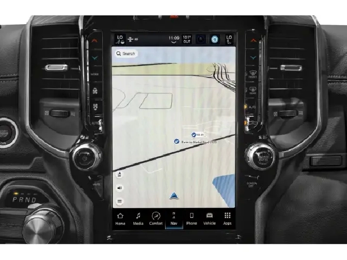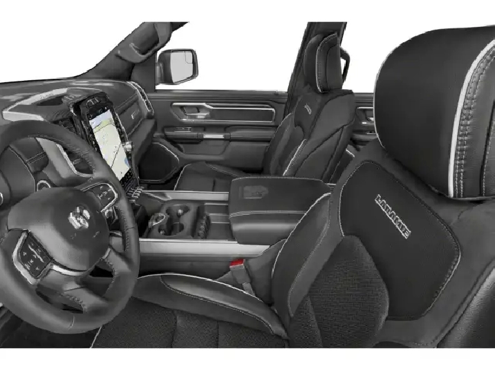 The exterior of the Ram 1500 Laramie boasts a commanding presence with its sleek, aerodynamic lines and alloy wheels that offer a touch of style and functionality. Step inside, and the Black interior welcomes you with premium leather seating and thoughtful detailing, providing a comfortable and luxurious ride. Key features such as a heated steering wheel and leather seats with cooling functionality ensure an enjoyable driving experience regardless of the season.