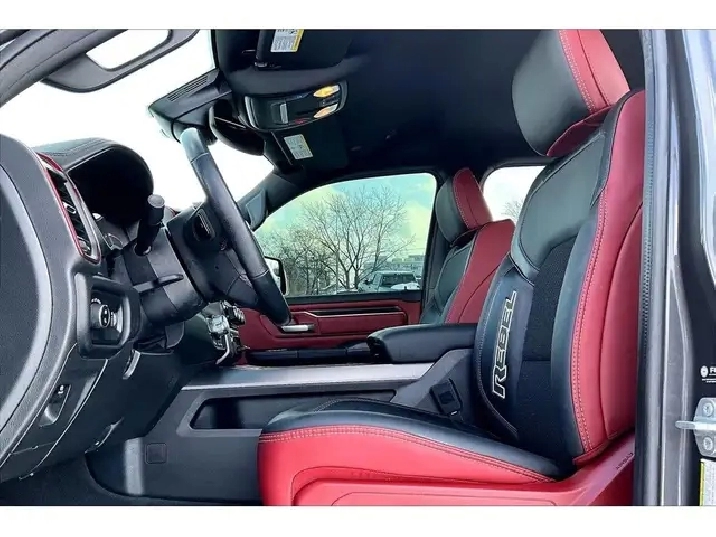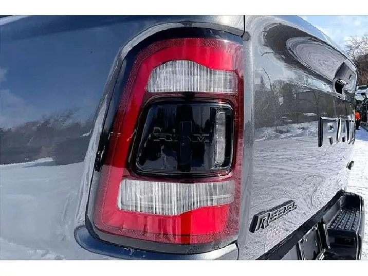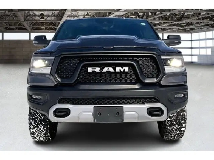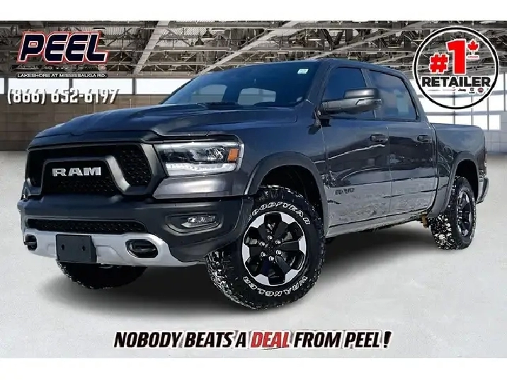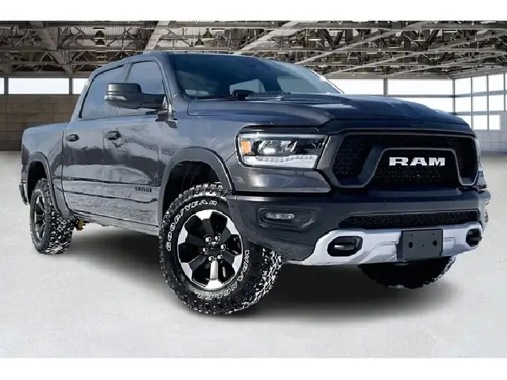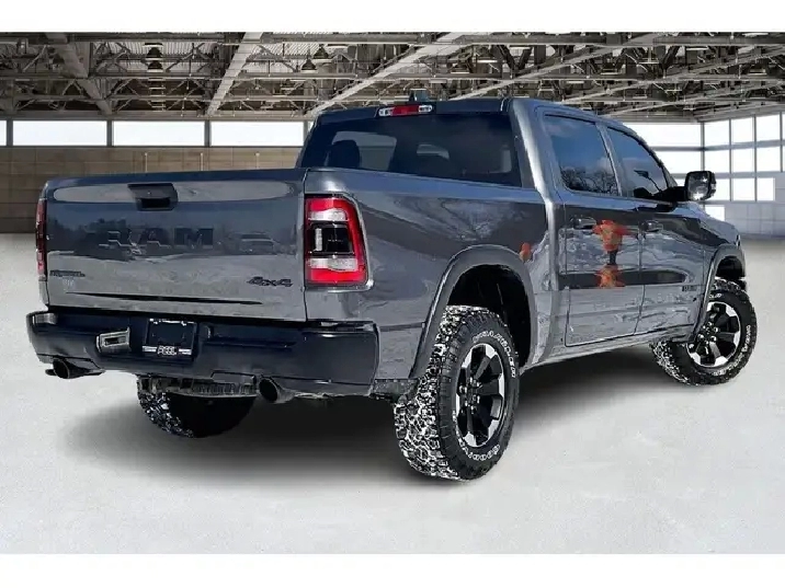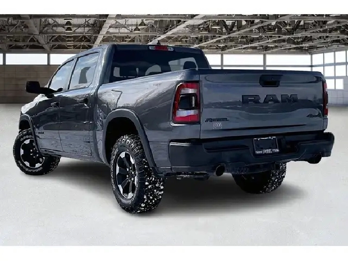 2024 Ram 1500 Rebel Crew Cab 4X4 | 5.7L V8 w/ eTorque | Granite Crystal Metallic | Uconnect 8.4 Touchscreen Display w/ Navigation | Apple CarPlay & Android Auto | Dual-done Automatic Climate Control | Spray-in Bed Liner | Class IV Hitch Receiver | Mopar Deployable Bed Step