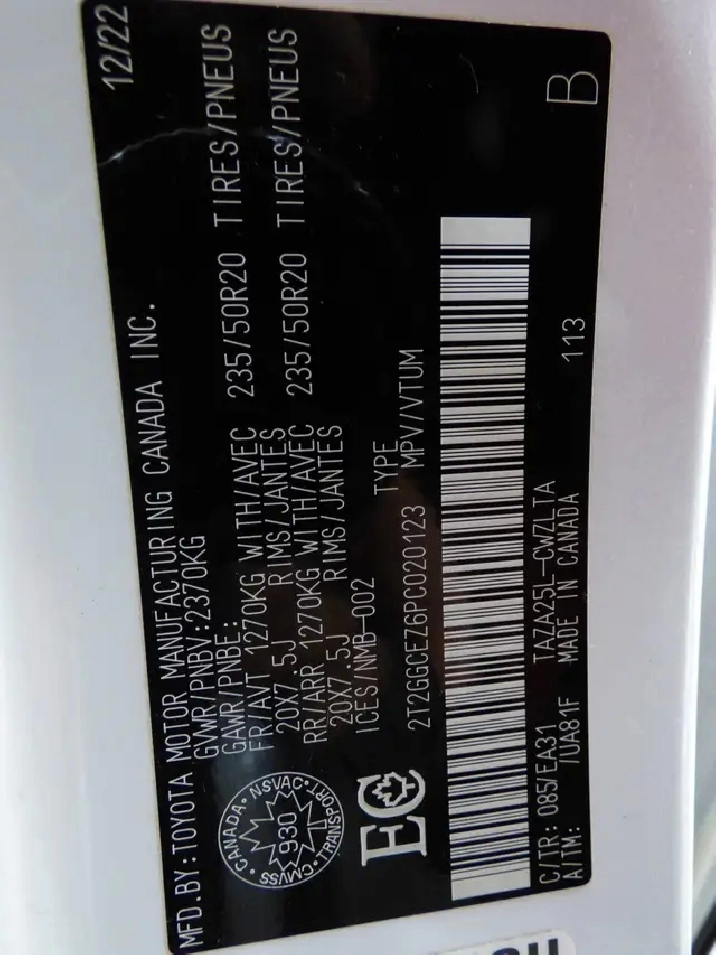 NIV: 2T2GGCEZ6PC020123