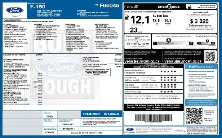 - Engine: 5.0L V8 -inc: flex-fuel capability and auto start/stop technology, Front License Plate Bracket, Standard in provinces where required
