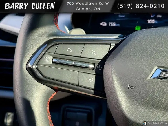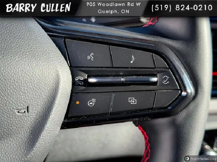 - Steering wheel, sport, flat-bottom, wrapped with red stitching and RST logo. Super Cruise Indicator