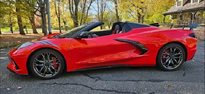 Corvette Stingray convertible 2025, Groupe d'équipement 2LT, avec l'option aile haute, sièges 2 tons optionnels GT2 (fibre de carbone), Mags Aluminium Forged optionnels, bas de caisse en fibre de carbone, toit et nacelles peints en carbone éclair, seulement 1,956 Kilomètres, acheté au mois d'avril 2025 chez le concessionnaire Thibault GM de Sherbrooke, Balance complète de garantie GM, cause de vente achat d'une Corvette 2026, Corvette originale jamais accidenté, toujours gardé dans un garage chauffé, 1 seul propriétaire, (À NOTÉ PAS DE TAXE DE LUXE), (ACHETEUR SÉRIEUX SEULEMENT), prix $114,900. pour info. Michel