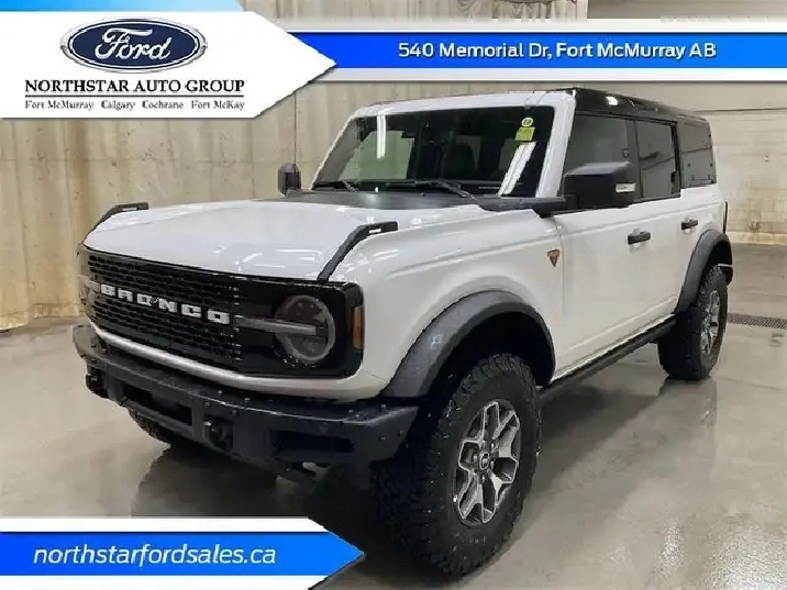 Navigation, LED Lights, Aluminum Wheels, Sunroof, Off-Road Suspension! With cool retro-styling, innovative features and impressive off-road capability, this legendary 2025 Ford Bronco has very little to prove.With a nostalgia-inducing design along with remarkable on-road driving manners with supreme off-road capability, this 2025 Ford Bronco is indeed a jack of all trades and masters every one of them. Durable build materials and functional engineering coupled with modern day infotainment and driver assistive features ensure that this iconic vehicle takes on whatever you can throw at it.This oxford white SUV has an automatic transmission and is powered by a 315HP 2.7L V6 Cylinder Engine.Our Bronco's trim level is Badlands. Go the distance over any terrain in this Bronco Badlands, with even more undercarriage protection, robust Bilstein shock absorbers, front active anti-roll bars, front and rear tow hooks, and an assortment of upfitter switches. The seats are lined with marine-grade vinyl, with rubber floor covering, for easy rinsing after your intense off-road sessions. Other features include a manual targa composite 1st row sunroof, a manual convertible hard top with fixed rollover protection, a flip-up rear window, LED headlights with automatic high beams, and proximity keyless entry with push button start. Connectivity is handled by a 12-inch LCD screen powered by SYNC 4 with inbuilt navigation, wireless Apple CarPlay and Android Auto, with SiriusXM satellite radio. Additional features include towing equipment including trailer sway control, pre-collision assist with pedestrian detection, forward collision mitigation, a rearview camera, and even more. This vehicle has been upgraded with the following features: Navigation, Led Lights, Aluminum Wheels, Sunroof, Off-road Suspension, Apple Carplay, Android Auto.To apply right now for financing use this link : http://www.northstarfordsales.ca/new/apply-for-credit.htmlSee dealer for details.Vehicle pricing offer shown expire 2025-11-30. o~o