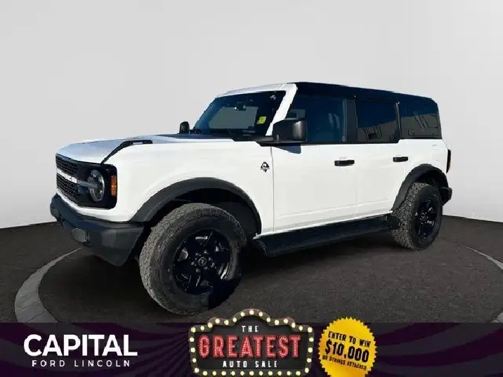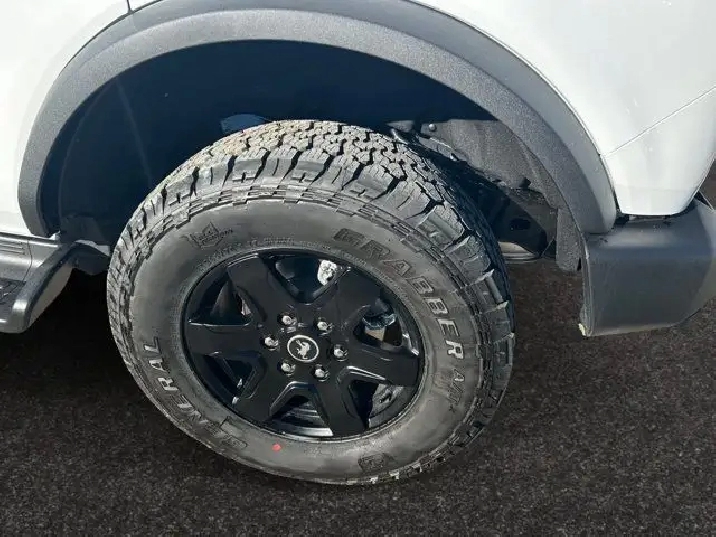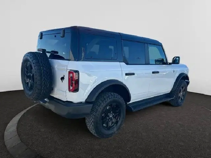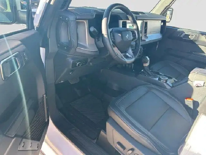- FRONT & REAR FLOOR LINERS W/O CARPET FLOOR MATS -inc: Custom accessory pre-installed Deletes carpet front and rear floor mats,BLACK APPEARANCE PACKAGE -inc: black appearance graphics package Black-Painted Moulded-In-Colour Grille white BRONCO lettering Black Moulded-In-Colour Fender Flares Black Moulded-In-Colour Sideview Mirror Caps Black Moulded-In-Colour Door Handles,SHADOW BLACK-PAINTED HARD TOP -inc: Hard Top Sound Deadening Headliner Rear-Window Defroster & Washer,ENGINE BLOCK HEATER,TRANSMISSION: 10-SPEED AUTOMATIC -inc: trail control and trail turn assist (STD),BLACK ONYX HEATED LEATHER-TRIMMED/VINYL BUCKET SEATS -inc: 10-way power driver and 8-way power passenger including fore/aft up/down and recline and armrest w/2 beverage holders,TRANSMISSION: 10-SPEED AUTOMATIC W/2.7L -inc: trail control trail turn assist and trail one-pedal driving,ENGINE: 2.3L ECOBOOST I-4 (STD),OXFORD WHITE,Turbocharged,Brake Assist,LED Headlights,Steering Wheel Audio Controls,Aluminum Wheels,Intermittent Wipers,Four Wheel Drive,Tow Hooks,Running Boards/Side Steps,Tow Hooks,Tires - Rear All-Terrain,Rollover Protection Bars,Automatic Highbeams,Tire Pressure Monitor,Automatic Headlights,Requires Subscription,Conventional Spare Tire,Fog Lamps,Conventional Spare Tire,ABS,AM/FM Stereo,Variable Speed Intermittent Wipers,4-Wheel Disc Brakes,Convertible Soft Top,Power Mirror(s),Heated Mirrors,MP3 Capability,Privacy Glass,Power Steering,Tires - Front All-Terrain,Power Door Locks,Lane Departure Warning,Telematics,WiFi Hotspot,Cruise Control,Keyless Start,Bluetooth Connection,MP3 Capability,Power Door Locks,Keyless Entry,WiFi Hotspot,Keyless Entry,Smart Device Integration,Requires Subscription,Multi-Zone A/C,A/C,Auxiliary Audio Input,Satellite Radio,Adjustable Steering Wheel,Rear Bench Seat,Trip Computer,Heated Steering Wheel,Pass-Through Rear Seat,Traction Control,Bluetooth Connection,Leather Steering Wheel,Power Windows,Climate Control,Power Door Locks,Smart Device Integration,Premium Synthetic Seats,Power Door Locks,Remote Engine Start,Keyless Start,Power Windows,Security System,Bucket Seats,Driver Illuminated Vanity Mirror,Tire Pressure Monitor,Traction Control,Blind Spot Monitor,Passenger Illuminated Visor Mirror,Leather Seats,Child Safety Locks,Remote Engine Start,Power Driver Seat,Driver Vanity Mirror,Driver Restriction Features,Immobilizer,Smart Device Integration,Telematics,Power Passenger Seat,Passenger Air Bag,Passenger Vanity Mirror,Cross-Traffic Alert,Lane Keeping Assist,Front Collision Mitigation,Heated Front Seat(s),Rear Parking Aid,Driver Monitoring,Driver Adjustable Lumbar,Floor Mats,Navigation System,Rear Head Air Bag,Trip Computer,Front Side Air Bag,Driver Air Bag,Passenger Air Bag Sensor,Lane Departure Warning,Back-Up Camera,Stability Control,Auto-Dimming Rearview Mirror,Front Head Air Bag,Requires Subscription,Requires Subscription