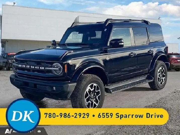 Our Bronco's trim level is Outer Banks. This Bronco Outer Banks takes things to a whole new level, with polished aluminum wheels, body colored fender flares, door handles and power heated side mirrors, along with LED headlights with high beam assist, front fog lights, and upgraded LED brake lights. This rugged off-roader also treats you with amazing comfort and connectivity features that include heated front seats, remote engine start, dual-zone climate control, front and rear cupholders, and an upgraded infotainment system with Apple CarPlay, Android Auto, SiriusXM and inbuilt navigation, to get you back home from your off-road adventures. Road safety is assured thanks to a suite of systems including blind spot detection, pre-collision assist with pedestrian detection and cross-traffic alert, lane keeping assist with lane departure warning, rear parking sensors, and driver monitoring alert. Additional features include proximity keyless entry with push button start, trail control, trail turn assist, and so much more. This vehicle has been upgraded with the following features: Navigation, Heated Seats, Remote Start, Blind Spot Detection, Lane Keep Assist, Aluminum Wheels, Sunroof.