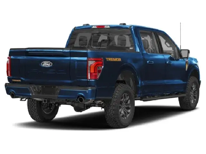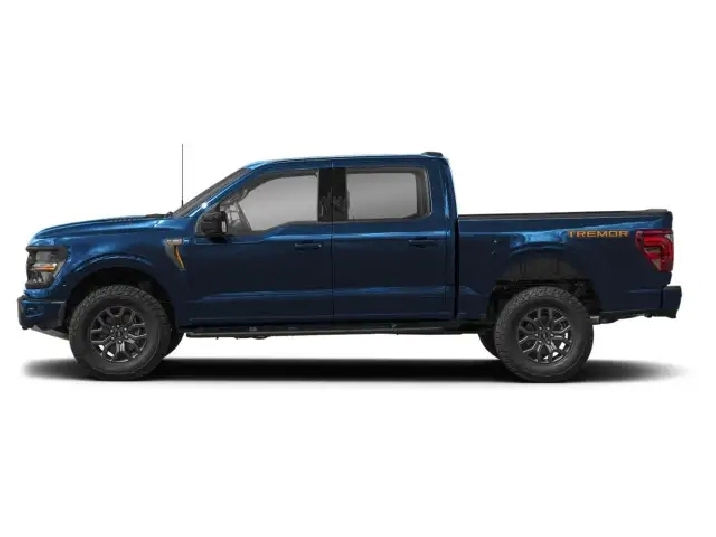 Introducing the 2025 Ford F-150 Tremor in a striking blue with a robust 4×4 drivetrain, designed for exceptional off-road handling. As a SuperCrew 5.5' Box model, this truck embodies strength and capability. The exterior features an eye-catching Modular Front Bumper and a Carbon Black Rear Bumper, ensuring you’re ready for any terrain. With a Power Tailgate, Bed Utility Package, and sleek LED Box Lighting, this truck ensures practicality and style all in one. The bold LED Taillamps and sideview mirror spotlights add a touch of modernity, while the high-intensity LED security approach lamps enhance safety. Inside, the black interior exudes luxury with ambient lighting, a Premium Wrapped Steering Wheel, and power-adjustable pedals that offer ultimate comfort. The Mobile Office Package transforms the cabin into a workspace, featuring a Console Worksurface and 400W Cab & Bed Outlets, catering perfectly to professionals on the go. Immerse yourself in the incredible sound of the B&O Unleashed Sound System by Bang & Olufsen with 14 speakers, including a subwoofer. Equipped with advanced technology, this F-150 offers a Heads-Up Display, Wireless Charging, Hi-Lock Transfer Case, and a comprehensive suite of safety features such as Advanced Security Pack and Lane Assist. Heated front and second-row seats along with a Heated Steering Wheel ensure comfort even in the coldest climates. Built for those who demand more from their truck, the F-150 Tremor combines power, luxury, and functionality. Whether you're conquering off-road trails or navigating city streets, this truck is your perfect companion. Get in touch with us to experience the innovation and might of the Ford F-150 Tremor firsthand.