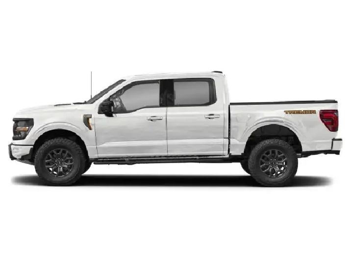 Step into the realm of power and capability with the 2025 Ford F-150 Tremor 4WD SuperCrew in striking white. Seamlessly combining rugged durability with sophisticated handling, this truck is built for any terrain with its robust 4x4 drivetrain. The exterior showcases a commanding presence with the Modular Front Bumper, Carbon Black Rear Bumper, and LED Taillamps that are as functional as they are stylish. The power tailgate and 5.5-foot bed equipped with utility packages, including LED box lighting and a tailgate work surface, ensure maximum practicality. Inside, immerse yourself in the tactical interior with black accents enough to cater to discerning tastes. Here, both driver and passengers will appreciate luxuries such as the Premium Wrapped Steering Wheel and Ambient Lighting. The interior doesn’t just look the part; it supports your journeys with technology like a Console Worksurface and a Media Bin Door, all complemented by the B&O Unleashed Sound System by Bang & Olufsen, delivering high-definition acoustics through 14 speakers. Safety and technology are at the forefront, featuring an Advanced Security Pack with SecuriLock Passive Anti-Theft System and tilt sensors. Drive with confidence thanks to Adaptive Cruise Control, Lane Assist, and a full-color Heads-Up Display. Enhance your connectivity on the go with wireless charging, smart device integration, and a convenient Wi-Fi hotspot. Ideal for adventurers and those requiring a dependable workhorse that does not sacrifice luxury. With its range of features and powerful engine, this truck is a perfect match for those who value performance and style in their travels. Contact our dealership today to arrange your test drive and make this exceptional vehicle yours!