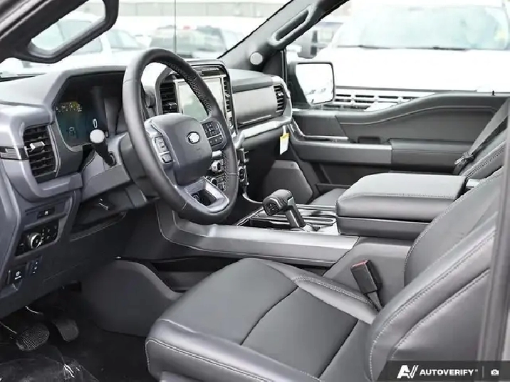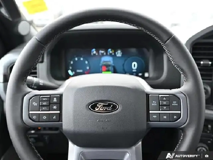 Our F-150's trim level is XLT. This XLT trim steps things up with running boards and dual-zone climate control, along with great standard features such as class IV tow equipment with trailer sway control, remote keyless entry, cargo box lighting, and a 12-inch infotainment screen powered by SYNC 4 featuring SiriusXM satellite radio, Apple CarPlay, Android Auto and FordPass Connect 5G internet hotspot. Safety features also include blind spot detection, lane keep assist with lane departure warning, front and rear collision mitigation and automatic emergency braking.