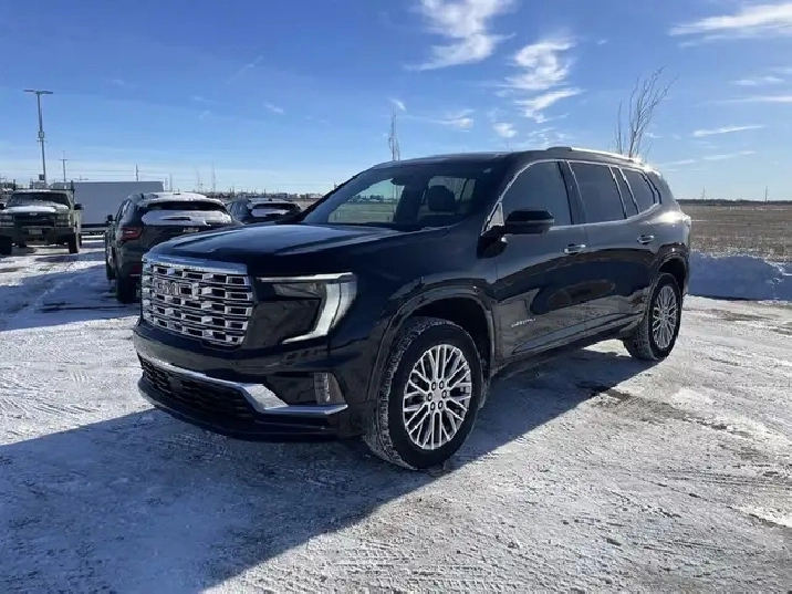 Denali Trim | Panoramic Power Sunroof | Ride and Handling Suspension | Trailering Package with Hitch Guidance | Heated & Ventilated Front Seats | Heated Second Row Outboard Seats | Heated Steering Wheel | Dual-Zone Automatic Climate Control The 2025 GMC ACADIA DENALI AWD represents the pinnacle of refinement, technology, and everyday versatility in a midsize SUV. Finished in Ebony Twilight Metallic with an After Dark interior, the Acadia Denali delivers a sophisticated presence with Denali-specific exterior accents, 20 Pearl Nickel machined aluminum wheels, brushed aluminum roof rails, and a hands-free AutoSense power liftgate. Its confident stance and premium detailing make it equally at home in the city or on long highway drives. Under the hood, power comes from a responsive 2.5L Turbo DOHC engine paired with an 8-speed automatic transmission and an advanced all-wheel-drive system. This combination provides smooth acceleration, confident traction, and composed handling in a wide range of driving conditions. The Ride and Handling suspension enhances comfort and control, while the trailering package with hitch guidance adds versatility for weekend towing needs. Inside, the Denali cabin is designed around comfort and intelligent design for up to seven passengers. Heated and ventilated front seats, heated second-row outboard seating, a heated steering wheel, dual-zone automatic climate control, rear air conditioning, and active noise cancellation create a quiet and relaxing driving environment. The panoramic power sunroof brings in natural light, while premium materials, memory seating, and a power tilt and telescoping steering column elevate the overall experience. Advanced technology and safety are seamlessly integrated throughout the Acadia Denali. Features such as the Bose 12-speaker premium audio system, wireless Apple CarPlay and Android Auto, wireless charging, HD Surround Vision, head-up display, adaptive cruise control, and GMC’s suite of advanced driver-assistance systems provide confidence, connectivity, and convenience on every drive. With its upscale design, strong turbo performance, and comprehensive feature set, the 2025 GMC Acadia Denali AWD is an exceptional choice for drivers seeking premium comfort without compromise. Stock #B5031A AMVIC LICENSED DEALER