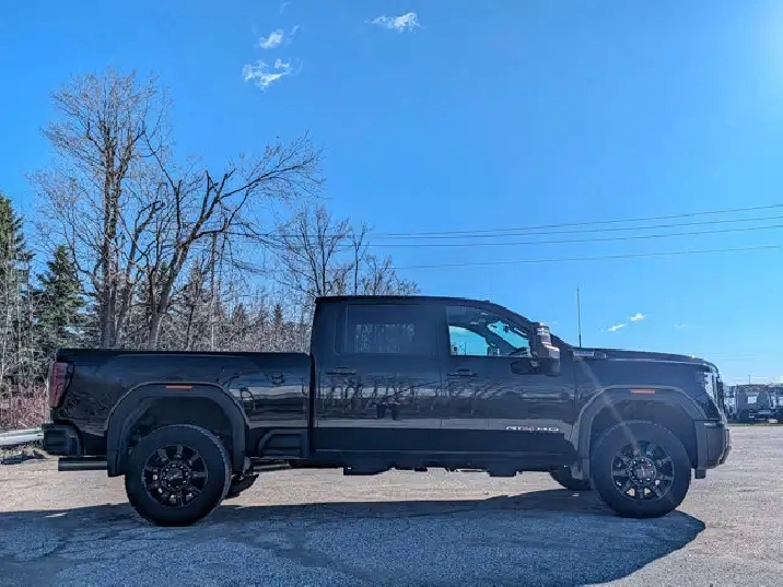Introducing the 2025 GMC Sierra 2500HD AT4, a previously owned powerhouse designed for those who demand both rugged capability and refined luxury. This 4x4 Crew Cab, finished in a sleek black exterior, is ideal for drivers who need a robust vehicle for work or play, offering the perfect blend of performance and comfort. The AT4 trim adds a touch of sophistication with its premium features and off-road prowess, making it a standout choice for Canadian adventurers.